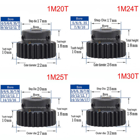 Engrenage à engrenage droit en acier 45 #, 1 pièce, avec pas de 1 M 20 dent-45 pignon, Mod métallique 1 moteur, engrenage convexe