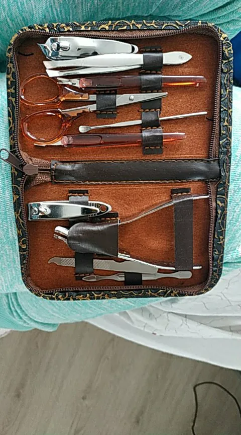 Ensemble 10in1 pédicure manucure Nail Art coupe-cuticules pince ciseaux nettoyant toilettage en acier inoxydable Kit étui outil