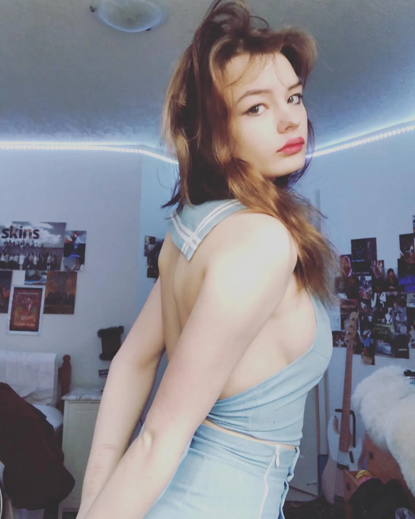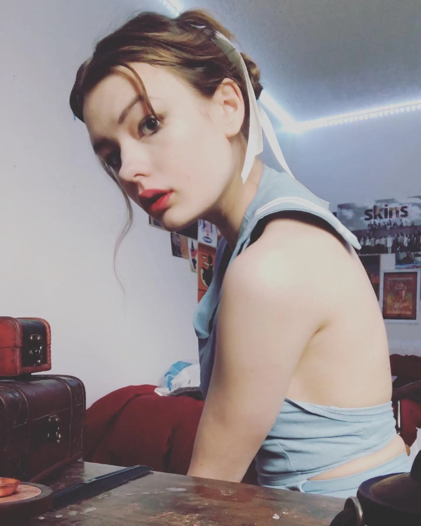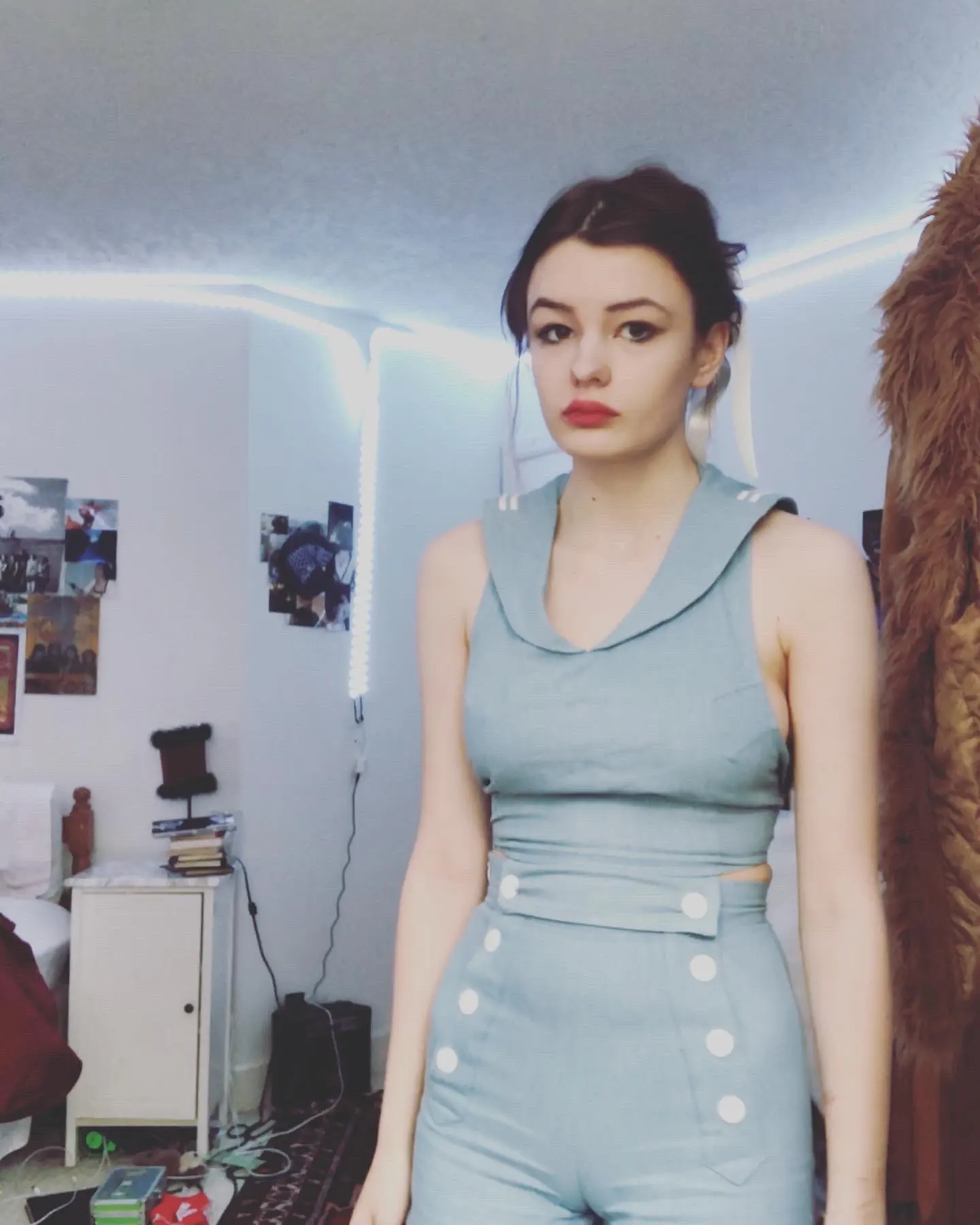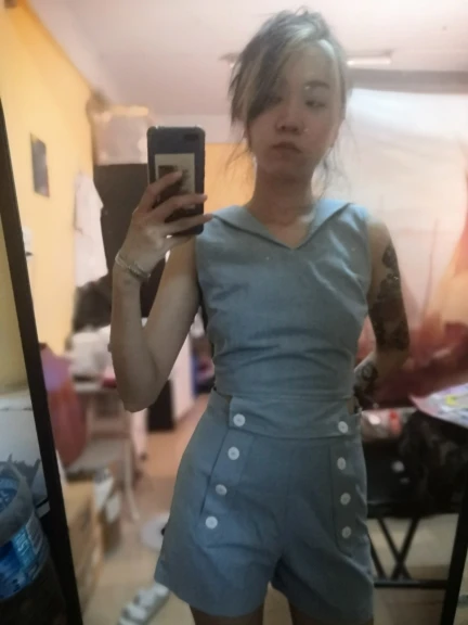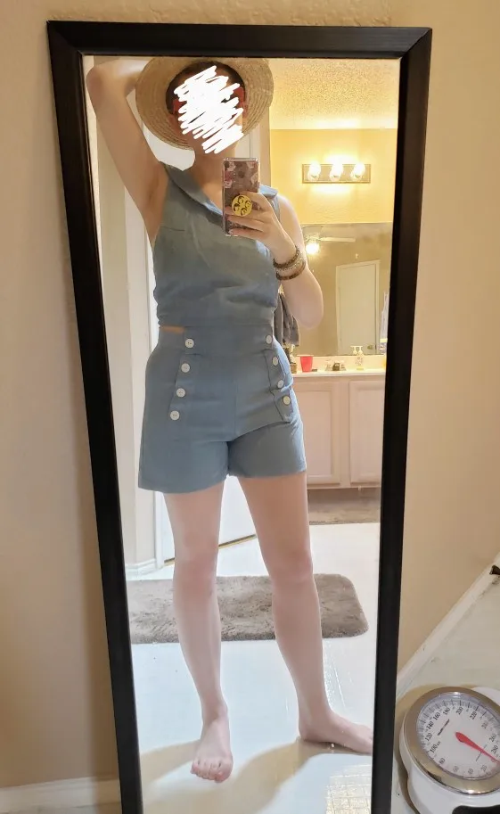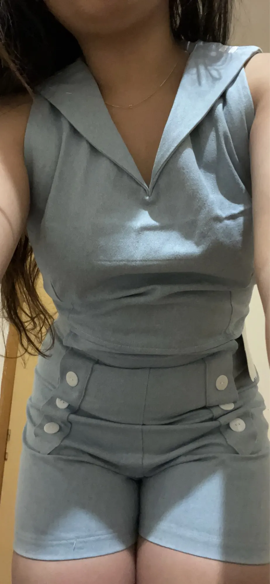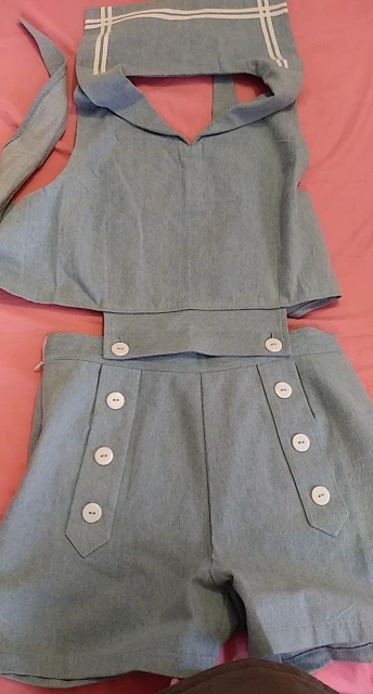 Ensemble 2 pièces pour femmes Style Lolita du film: T-shirt sans manches à col marin, gilet + short à dos ouvert, Cosplay mignon et Sexy de bonne qualité