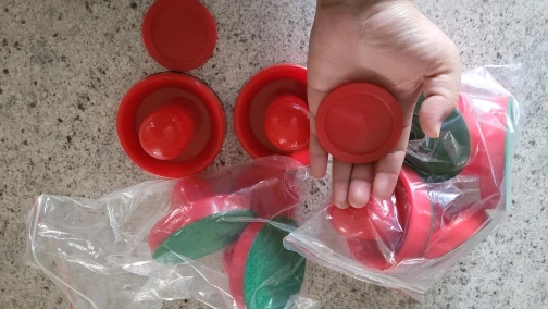 Ensemble de 4 poussoirs de Hockey sur Air et 4 rondelles de Hockey sur Air, en plastique rouge, EA14, vente en gros