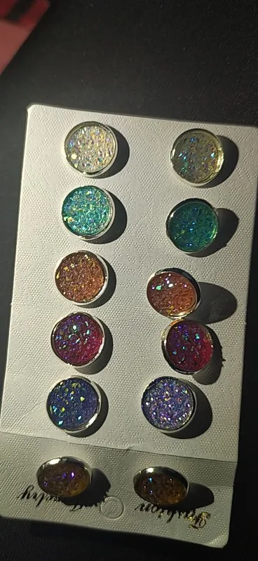 Ensemble de 6 boucles d'oreilles en résine brillante pour femmes, avec pierre Druzy ronde, ensemble de bijoux mignons, à la mode, 2022