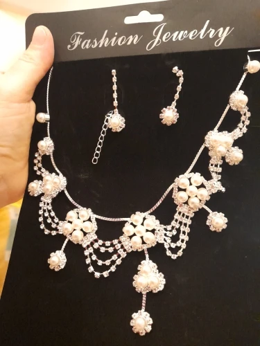Ensemble de bijoux avec strass plaqué argent, fausses perles, collier et boucles d'oreilles, pour mariée mariée, mariage A7UR, nouvelle mode 2022