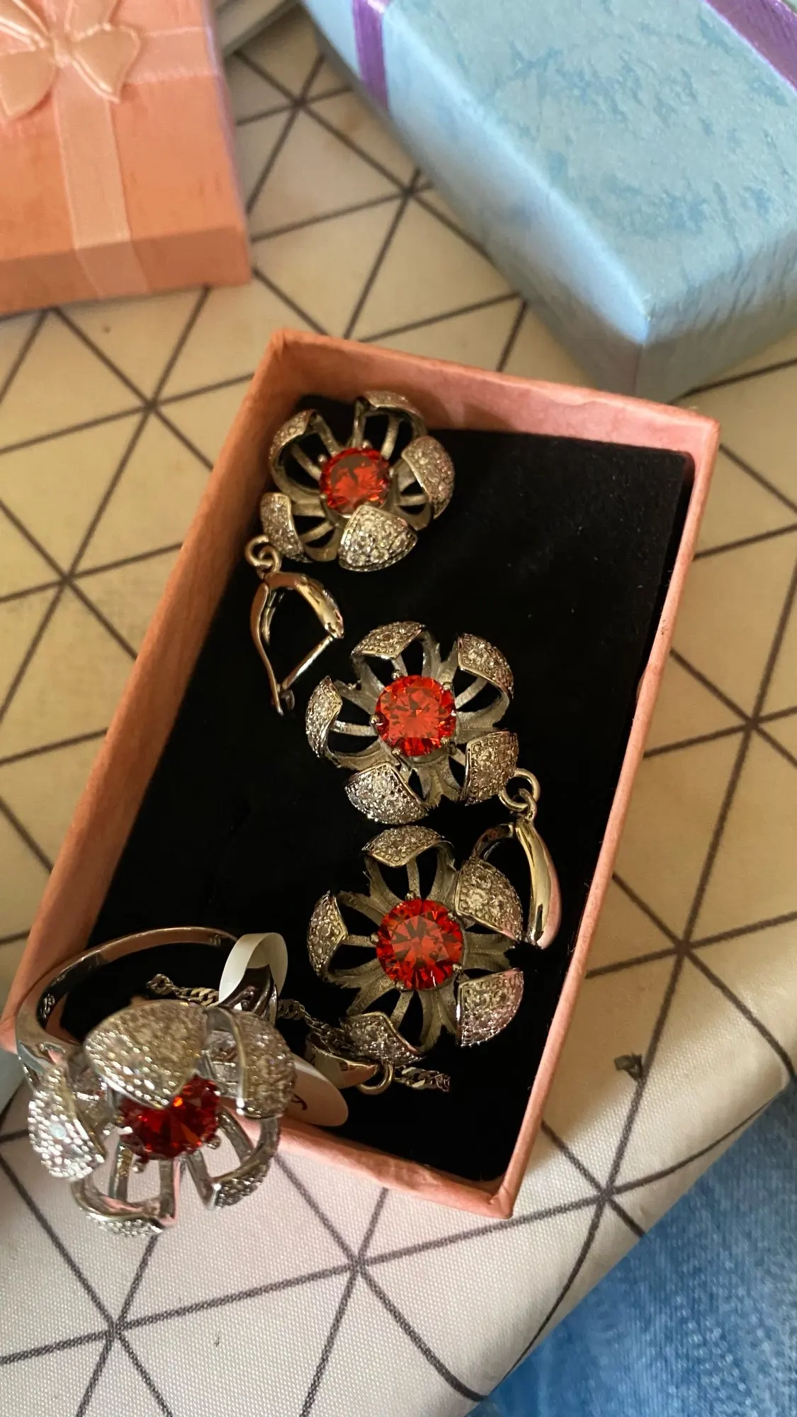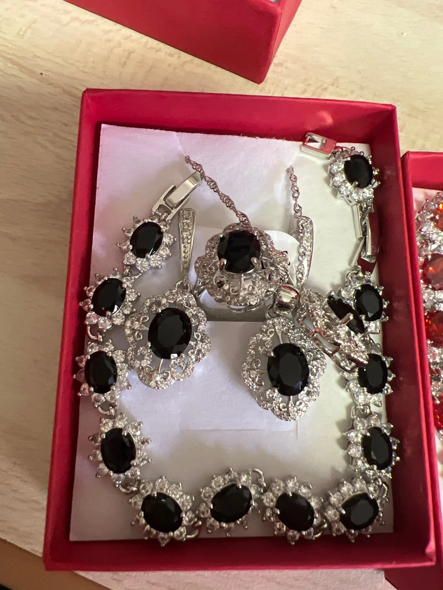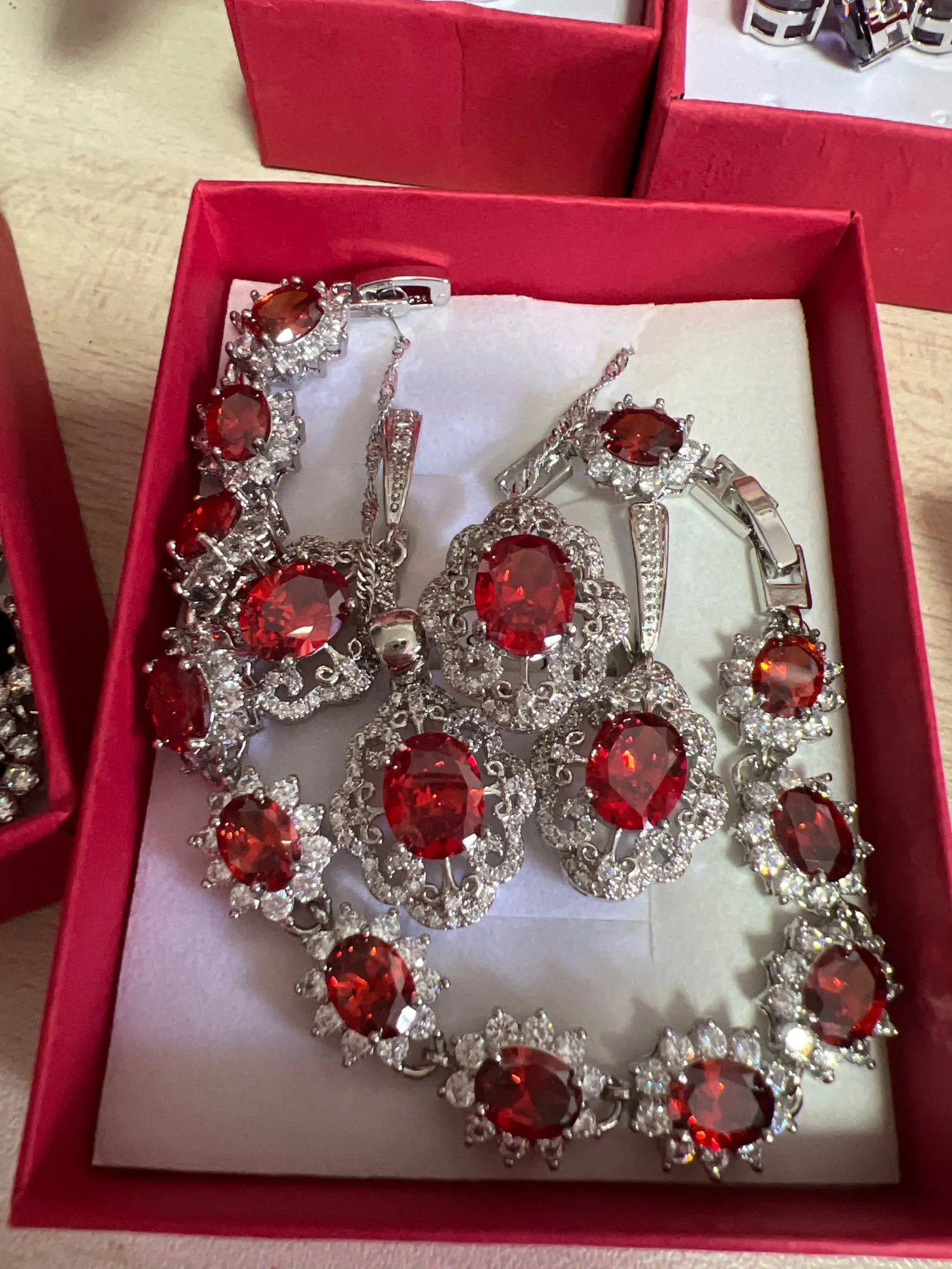 Ensemble de bijoux de mariage en argent 925 pour femmes, accessoires de mariée, grenat rouge, boucles d'oreilles, pendentif, collier, Bracelet et bague, cadeaux
