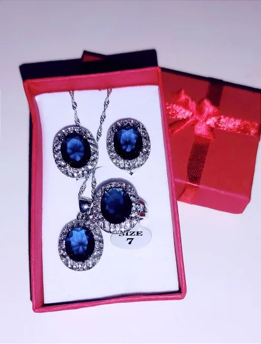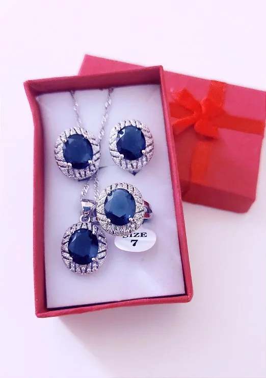 Ensemble de bijoux en argent Sterling 925, Costume de mariée, grand ensemble de boucles d'oreilles et bague, avec Clip en CZ bleu naturel, ensemble de 3 pièces pour femmes