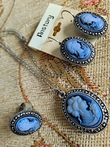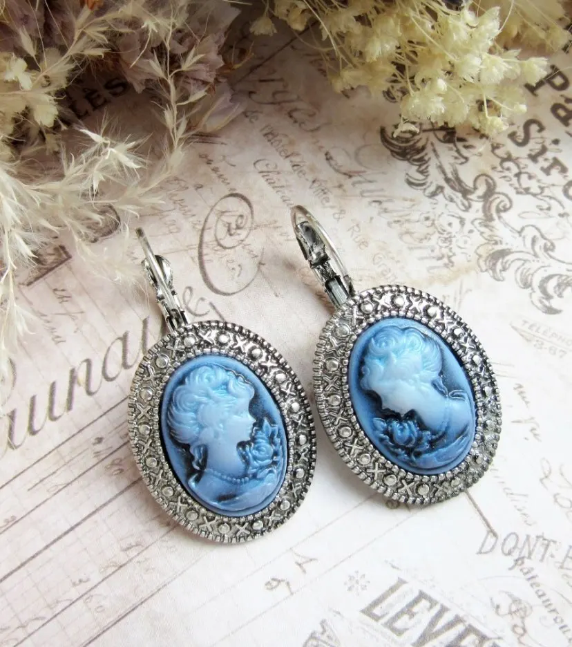 Ensemble de bijoux ovales pour dames, Queen Cameo, 5 couleurs, ensemble de bijoux, collier, boucles d'oreilles, style Antique plaqué argent, Vintage