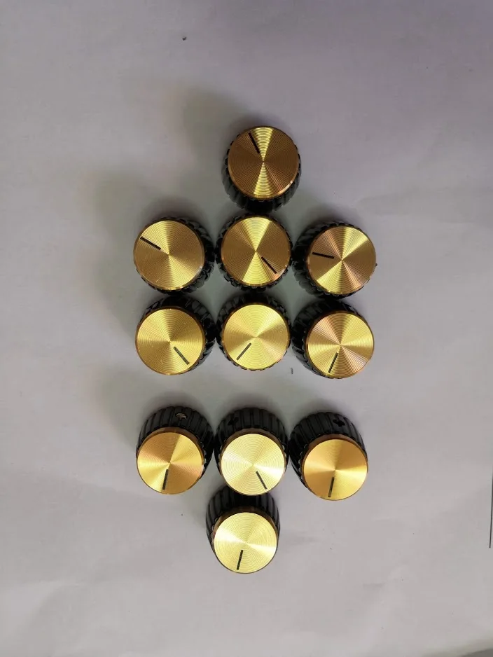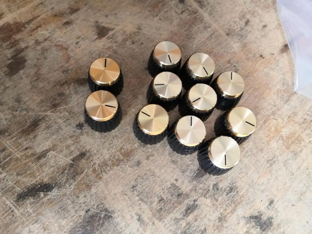 Ensemble de boutons de pointeur en plastique aluminium 19.5x15.5mm, capuchon de pointeur pour ampli guitare Marshall effet pédale Overdrive 1/4 ", Insert en laiton noir or