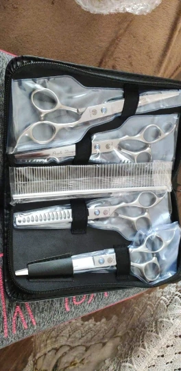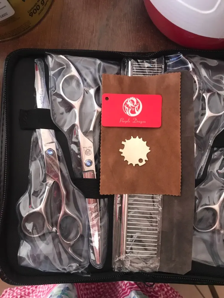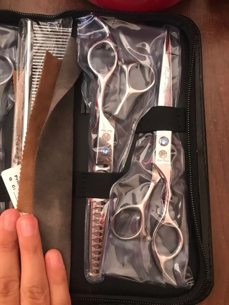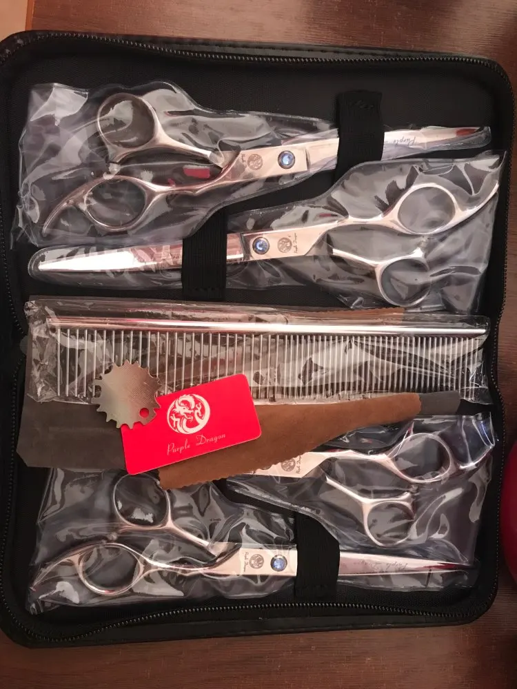 Ensemble de ciseaux pour animaux de compagnie, 7.0 pouces, pour toilettage de chiens, 2 ciseaux droits, courbés et amincissants, Kit d'outils de coupe de poils d'animaux à bord tranchant