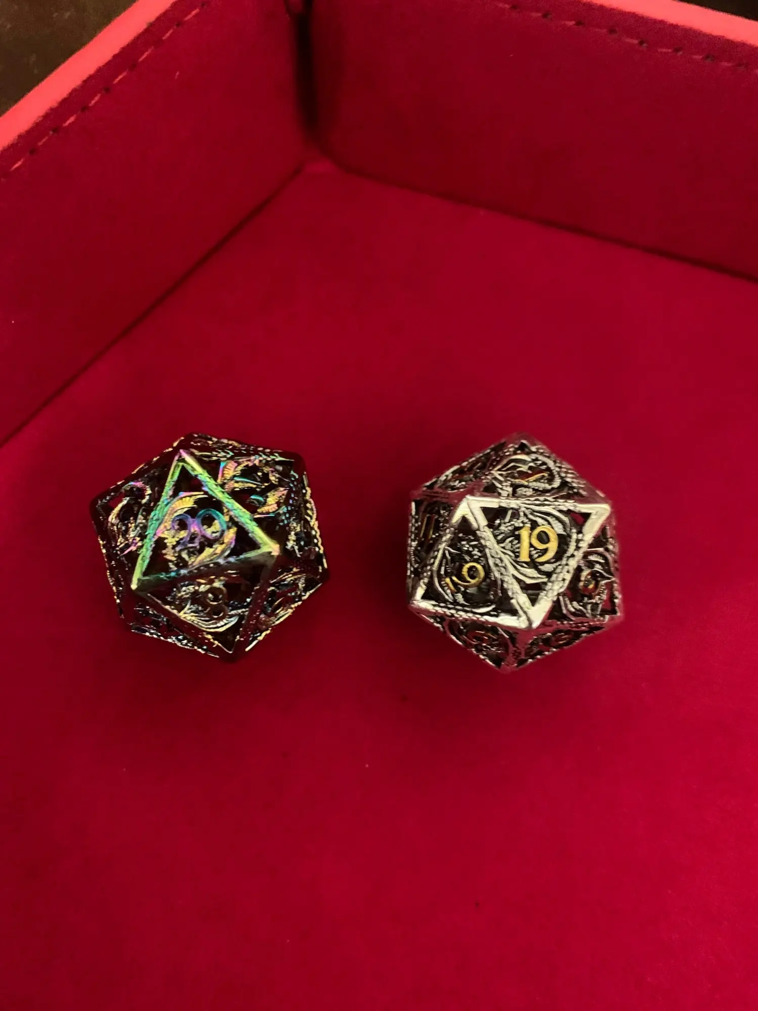 Ensemble de dés en métal DND, jeux de rôle D & D 7, dés polyédriques en cuivre pur creux, adaptés aux donjons et Dragon RPG dragon