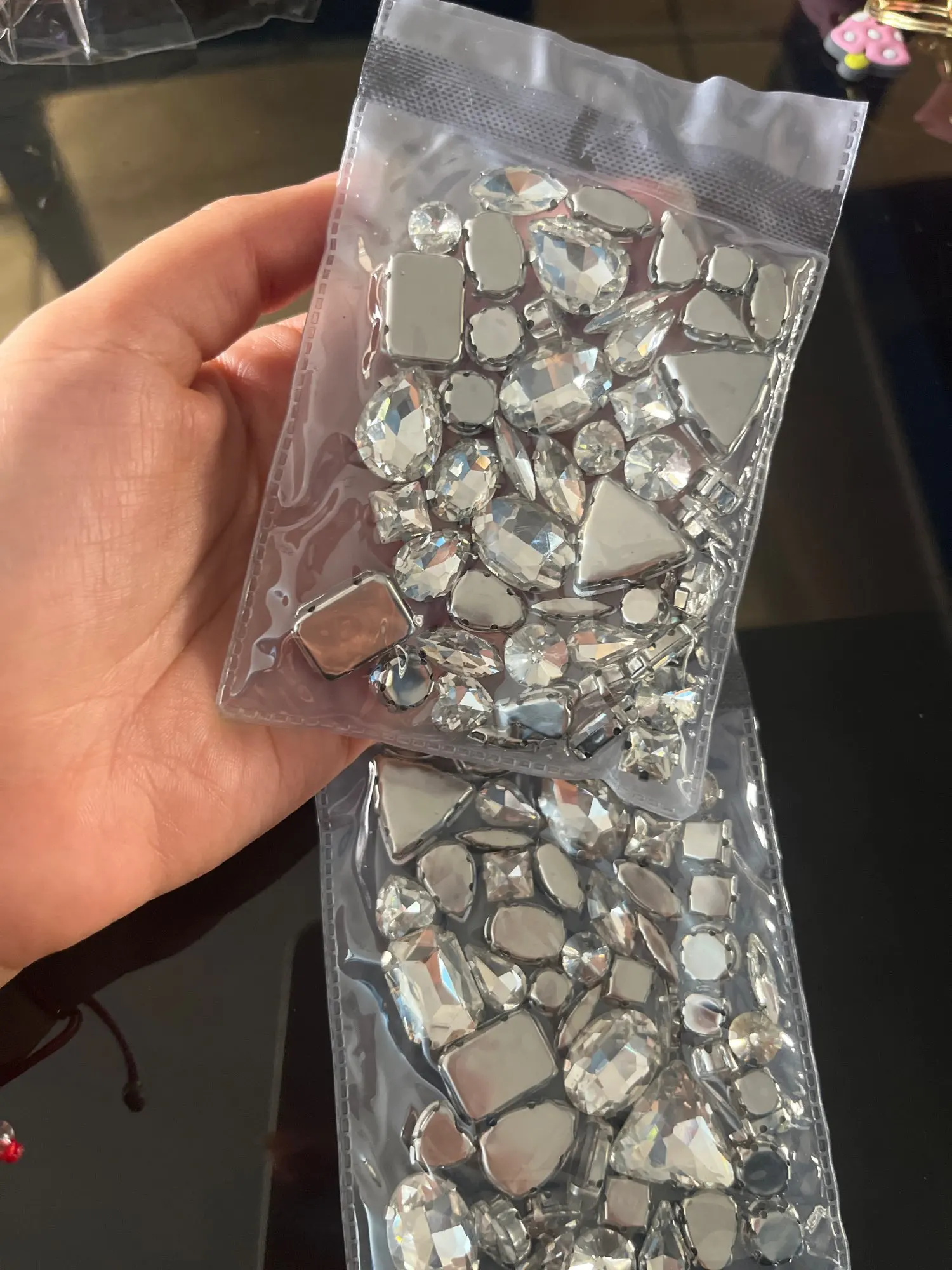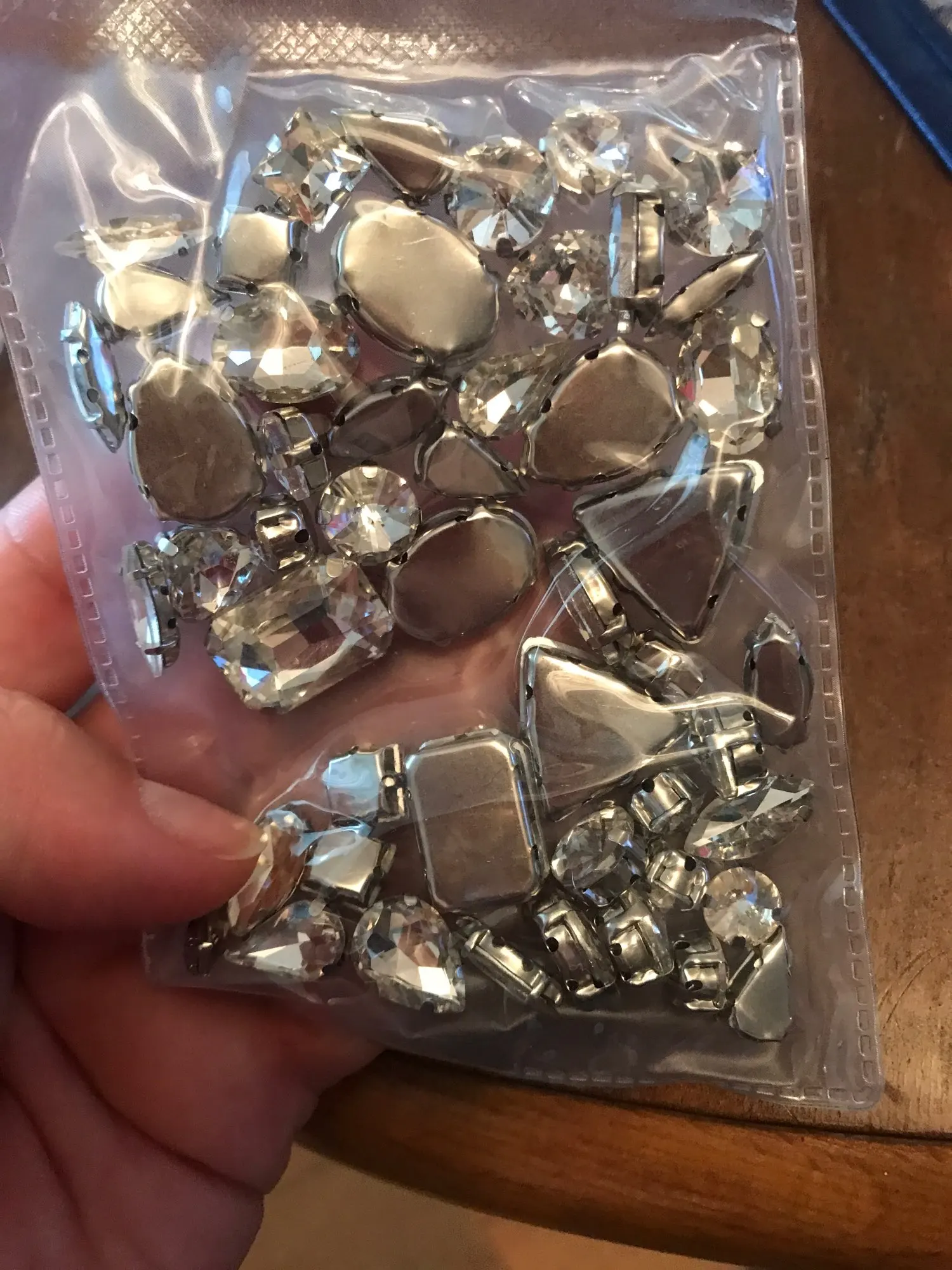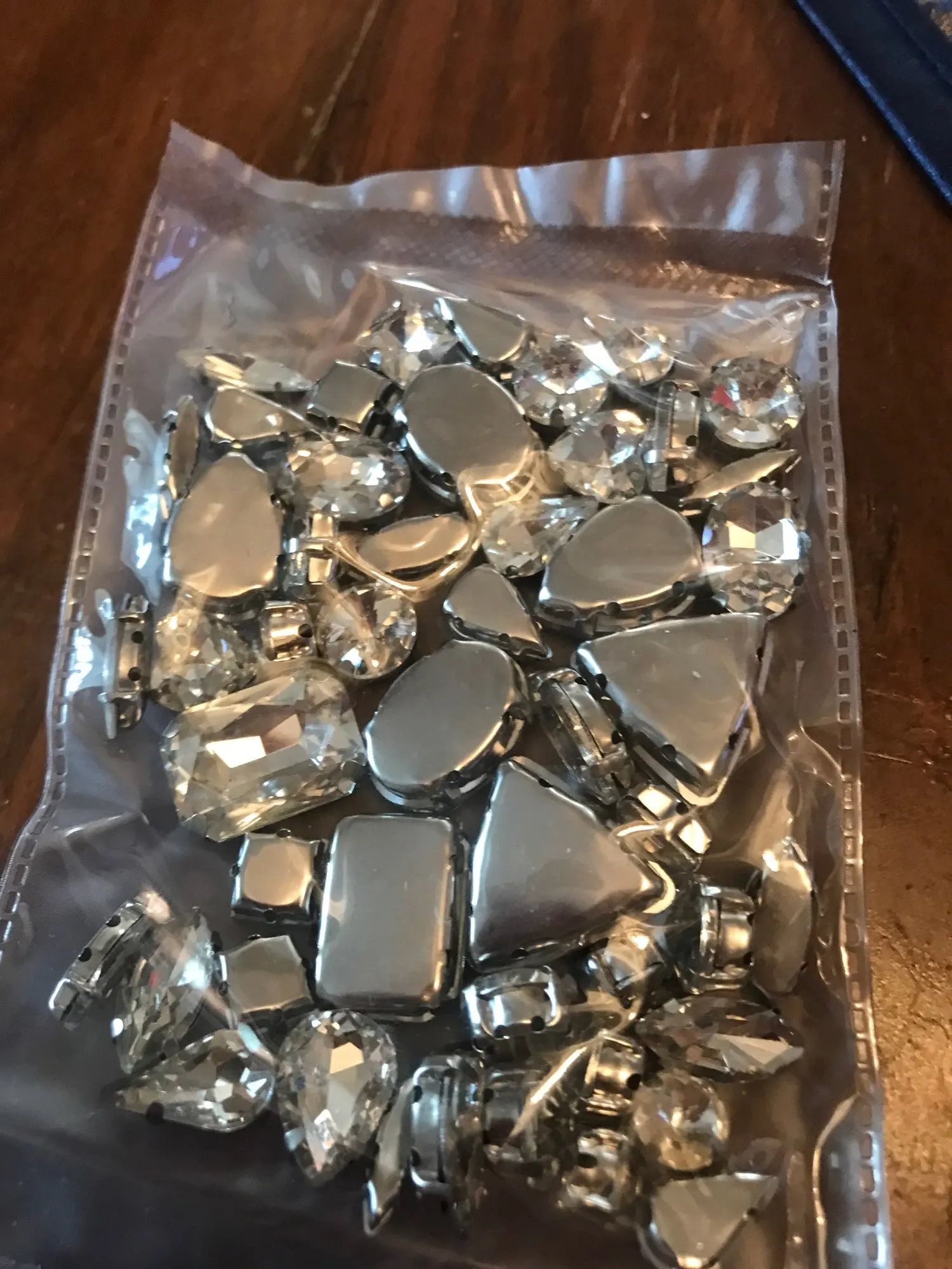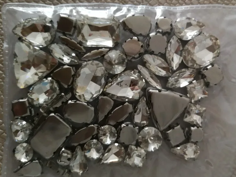 Ensemble de griffes en argent 50 pièces/sac formes mélangées, verre transparent, cristal cousu sur des strass, robe de mariée, sac, garniture bricolage