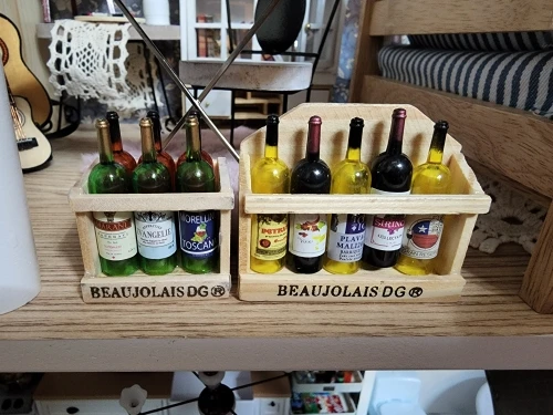 Ensemble de Mini bouteilles de vin avec boîte, accessoires miniatures pour maison de poupée 1/12, 1 pièce, modèle de boissons de Simulation, jouets pour décoration de maison de poupée
