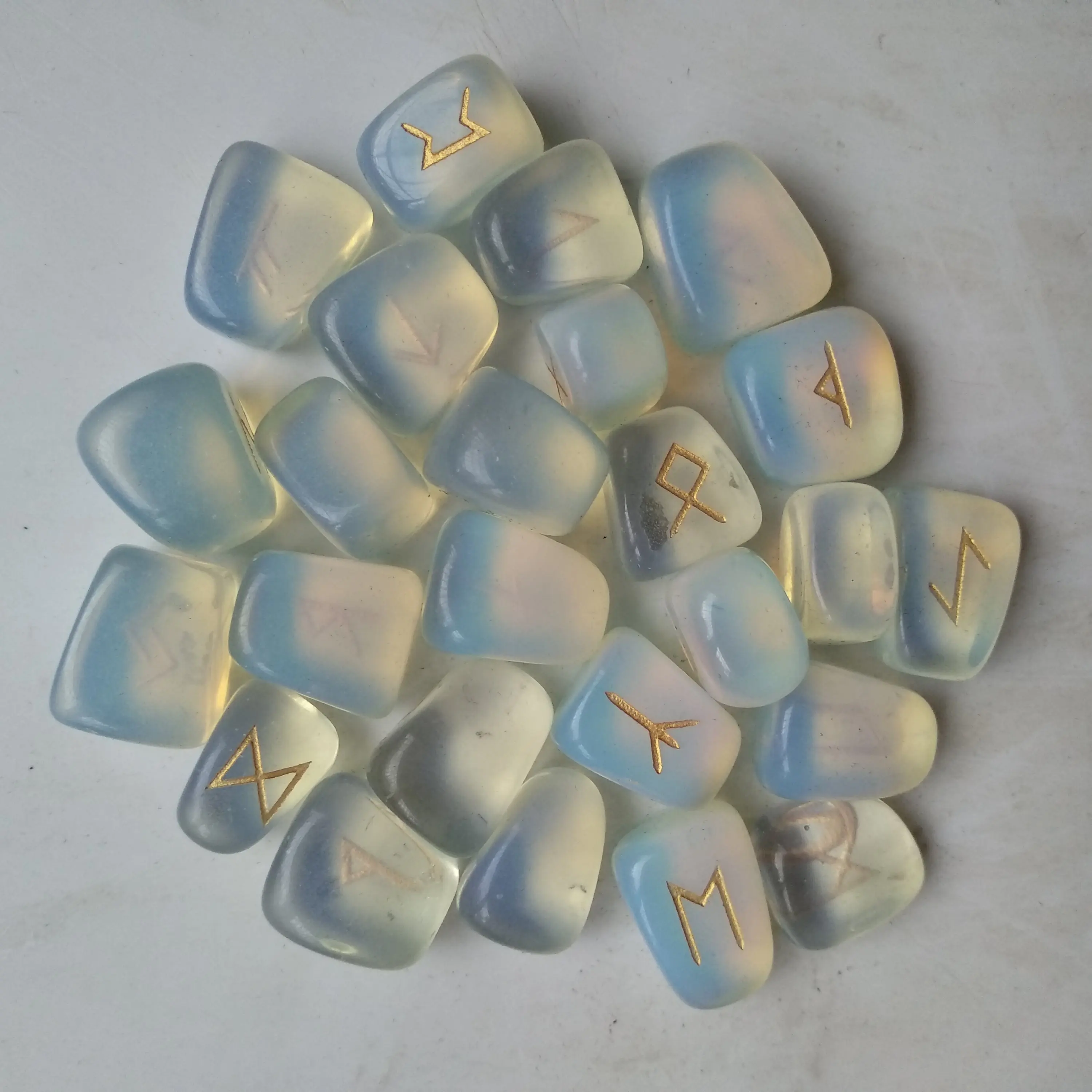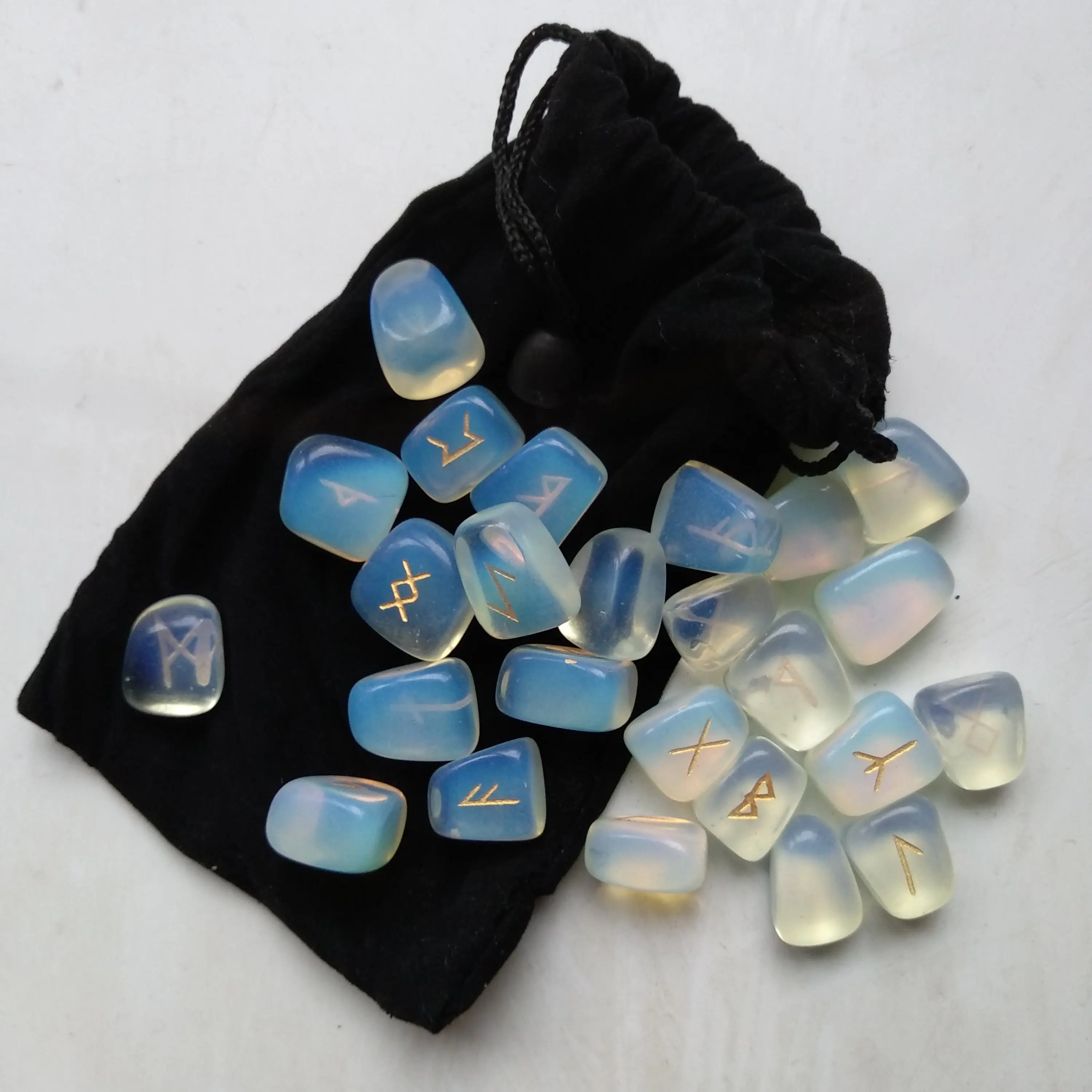 Ensemble de pierres de Rune opale blanche, 25 pièces, pierres à succès, Viking nordique poli, amulette de Divination, en cristal