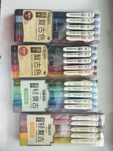 Ensemble de stylos Gel de couleur Vintage, nouveau, séchage rapide, 0.5mm, Clip de reliure, poignée en caoutchouc souple, pointe en balle, stylos rétro, fournitures de papeterie
