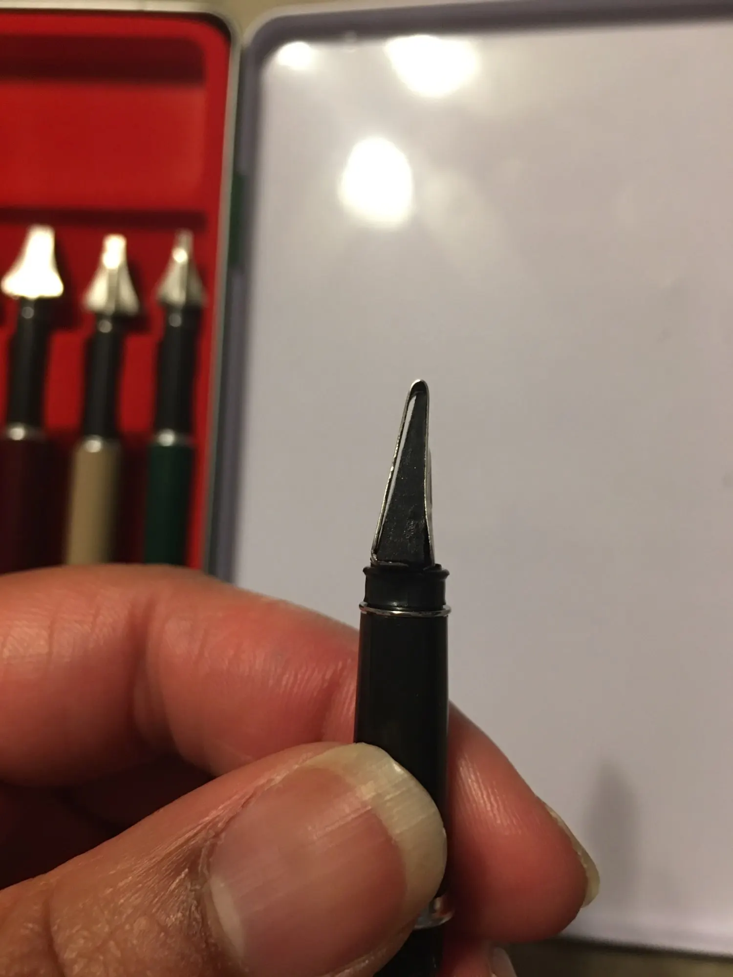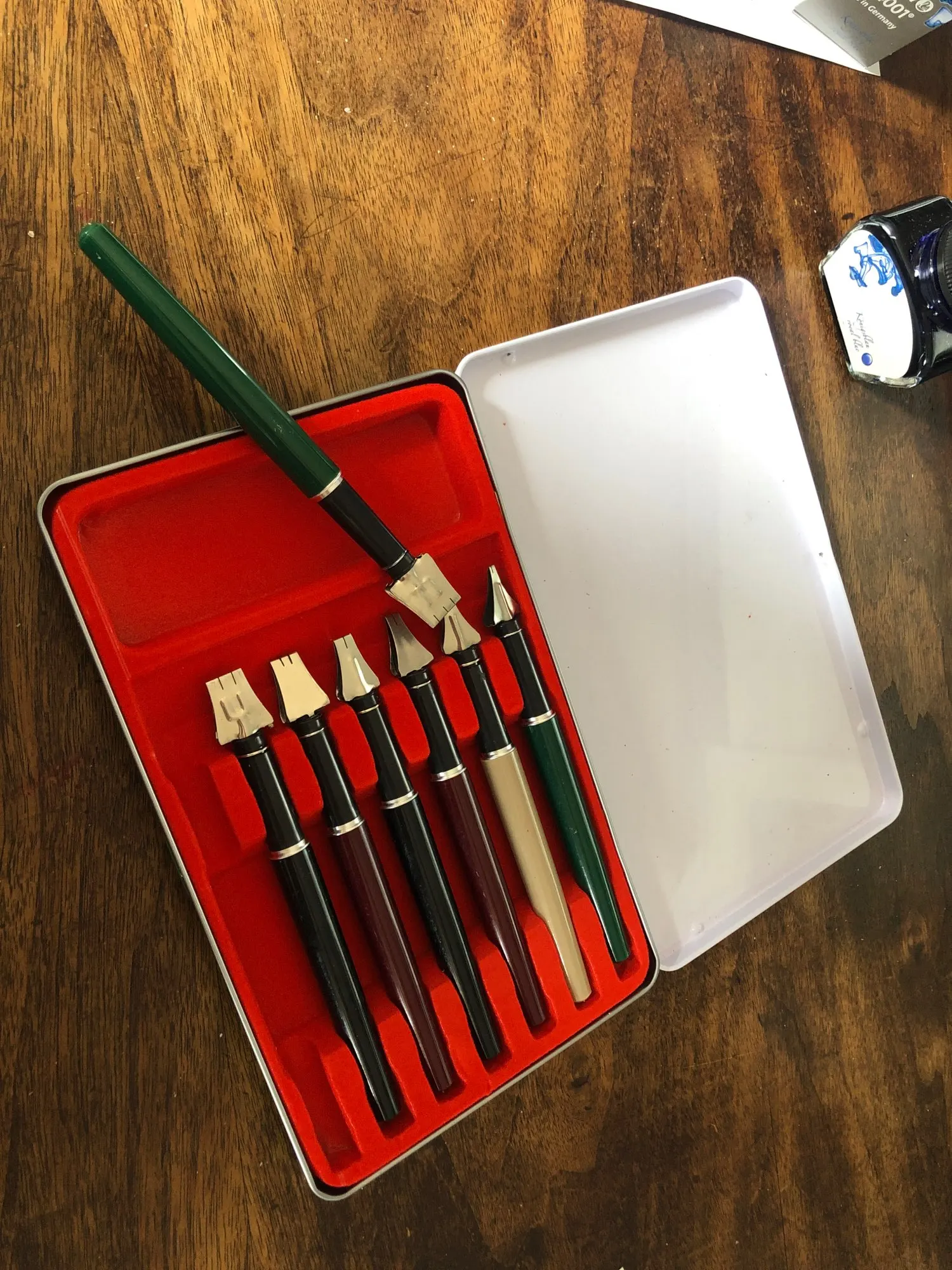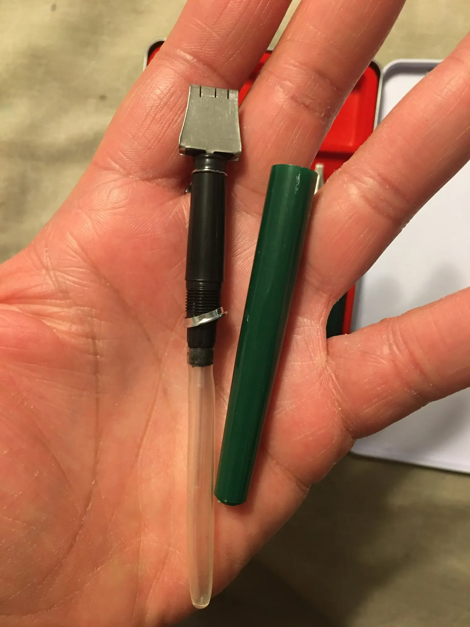 Pour remplir la plume, il faut tremper la pointe dans la bouteille d'encre et ensuite pomper ma pipette en plastique pour que l'encre remplisse la plume. Il faut une bonne pratique pour arriver à faire des traits fins... mais bon produit. Je recommande.