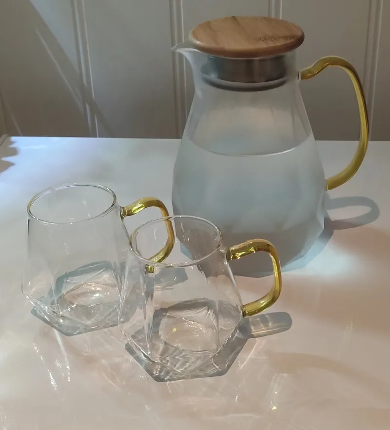 Ensemble de théière pour eau chaude et froide, Texture diamant 1,5 l, cafetière transparente, résistant à la chaleur
