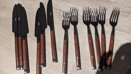 Ensemble de vaisselle occidentale en acier inoxydable, deux couteaux, fourchette, cuillère, couteau à manche en bois, fourchette, cuillère, couteau en acier inoxydable, cuillère