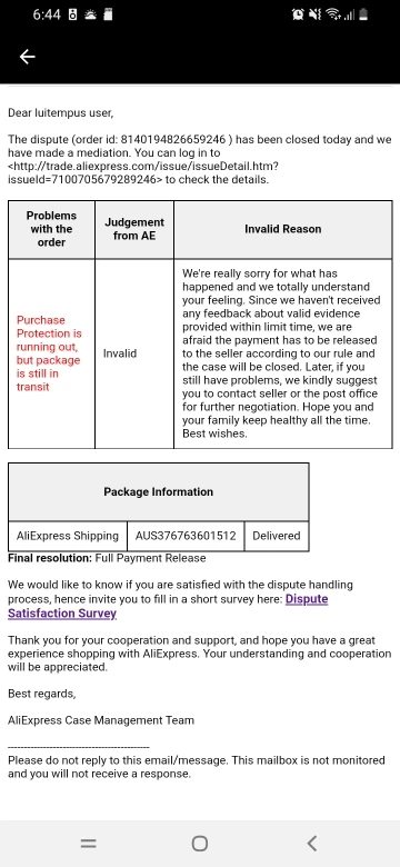 Évaluation Aliexpress :