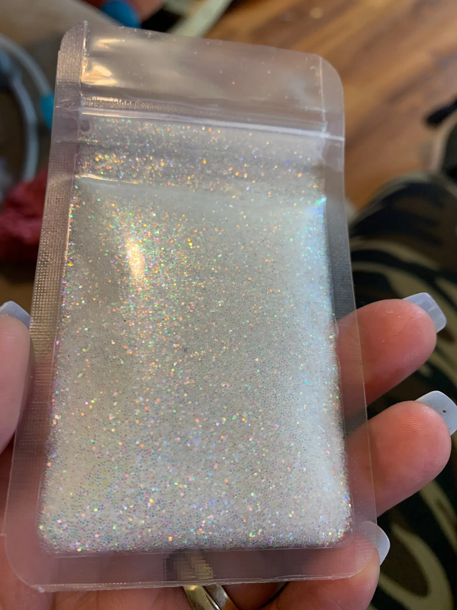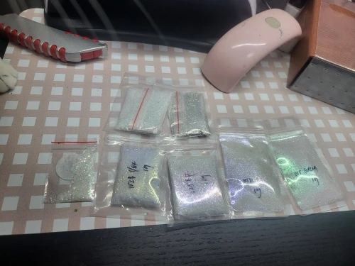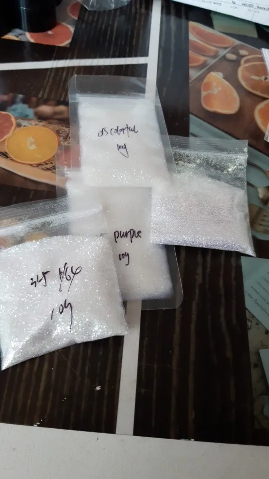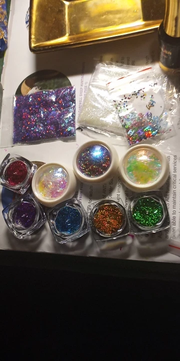 Commande du 9 août, reçue le 16 septembre. Ces paillettes sont très fines et très jolies.