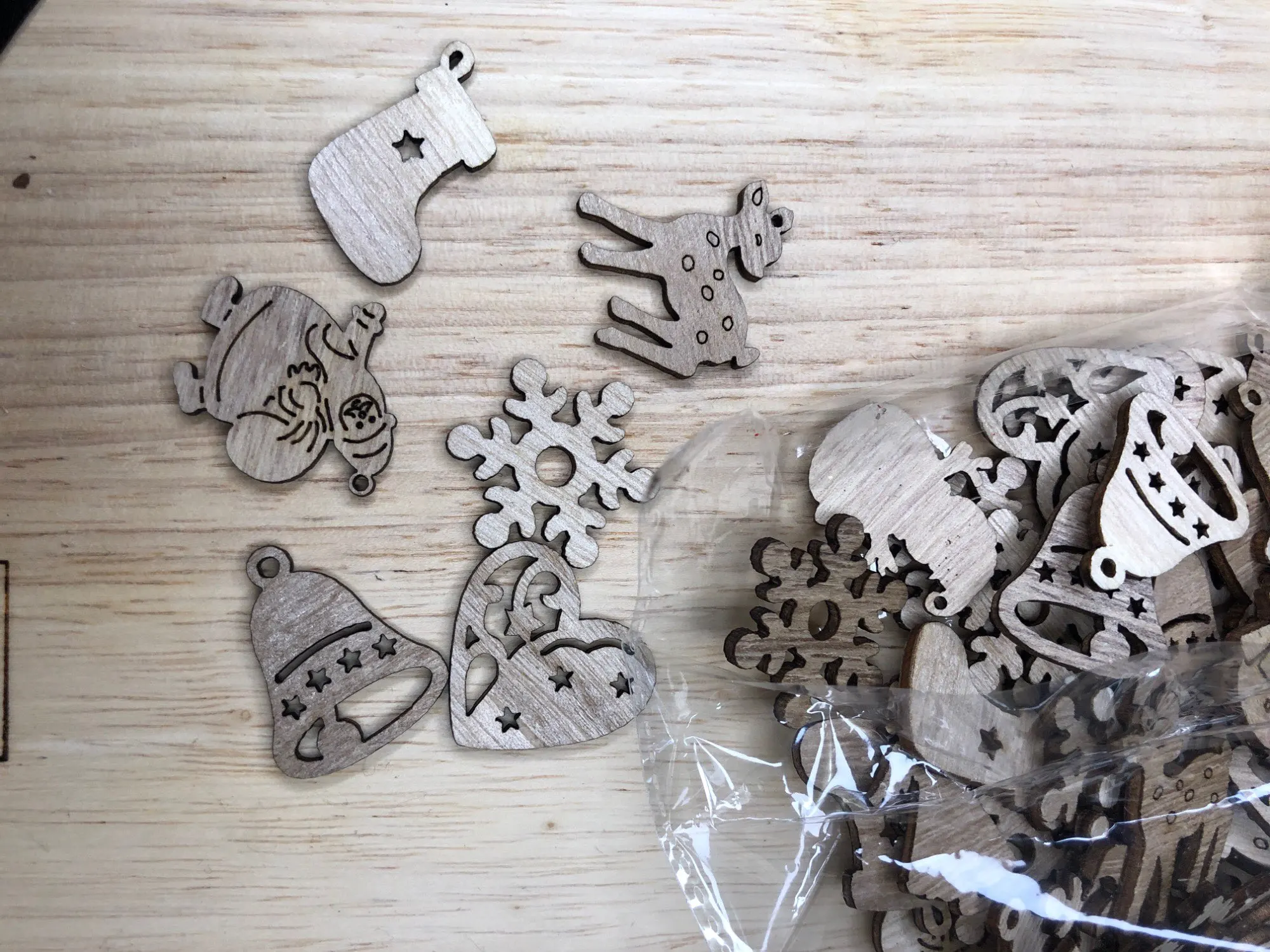 Étiquettes, boules en bois pour noël, décoration d'arbre de noël, ornement artisanal artistique, ensemble de jouets, 50 pièces