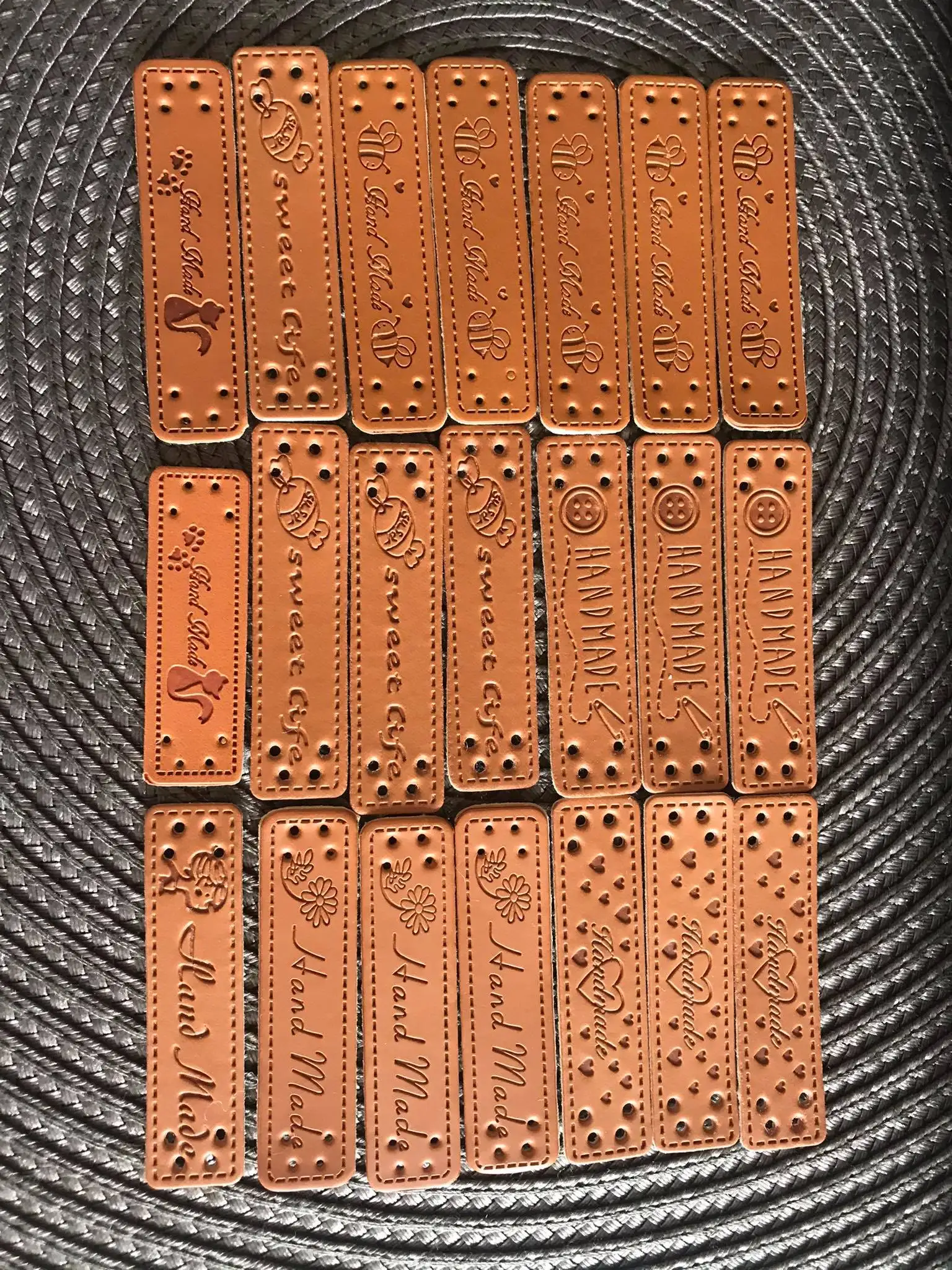 Étiquettes en cuir pour vêtements, 20 pièces, accessoires bricolage cadeau, artisanat, étiquettes pour vêtements faits à la main avec logo d'arbre