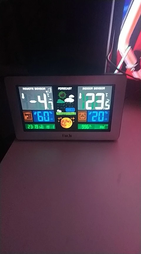 FanJu – Station météo numérique sans fil FJ3378, horloge murale, baromètre, thermomètre, hygromètre avec capteur extérieur