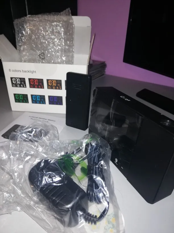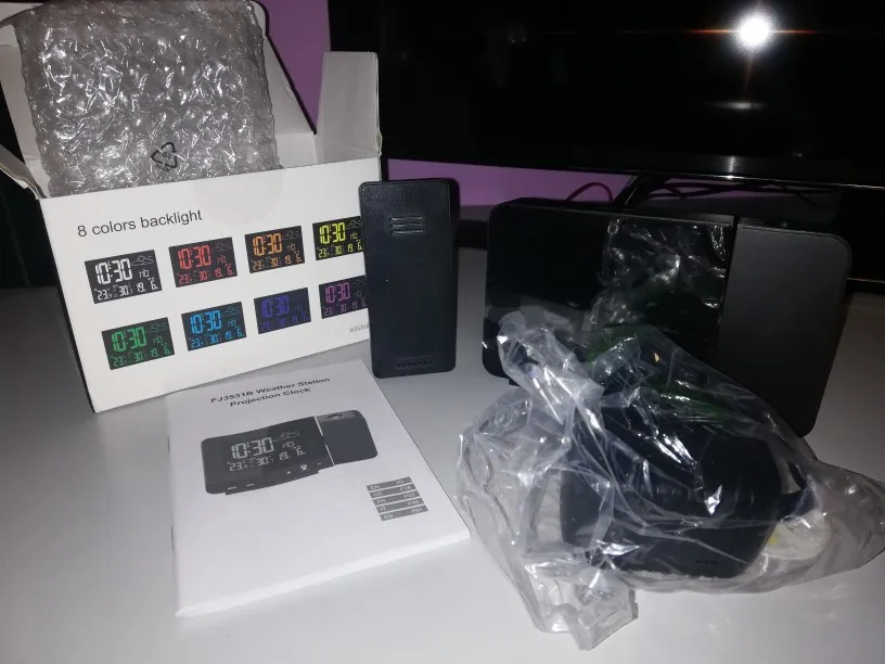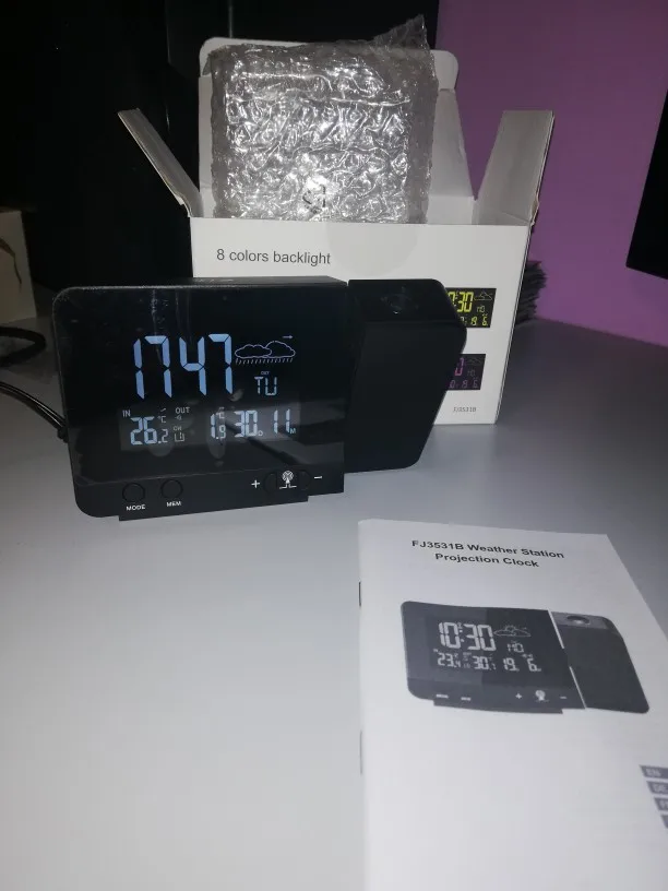 FanJu – thermomètre numérique d'alarme de Station météo, affichage en 8 couleurs, intérieur et extérieur, horloge de Projection sans fil, outils de veilleuse