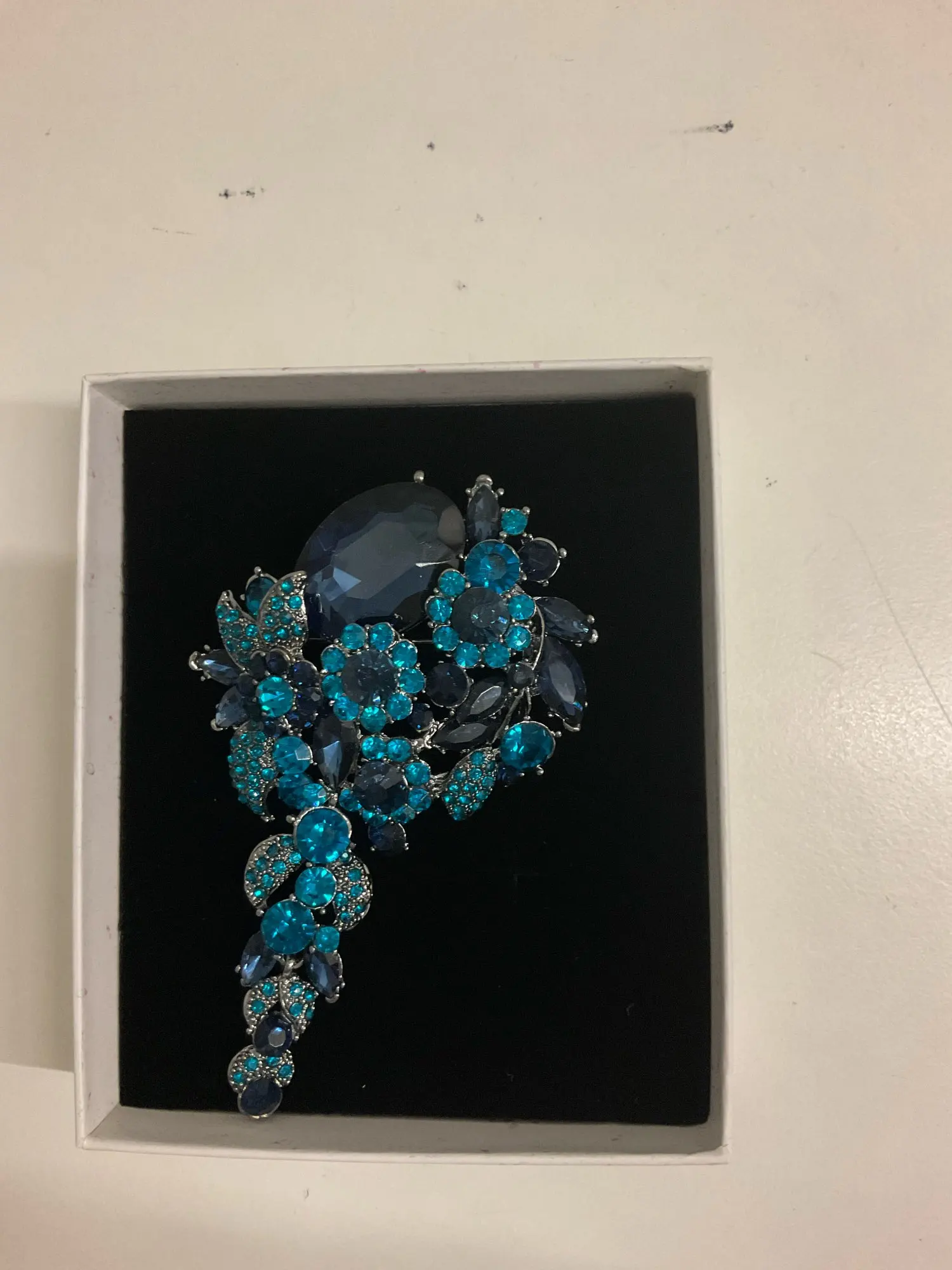 Femme Vintage fleur grappe longue pendentif broche broche bleu strass cristal