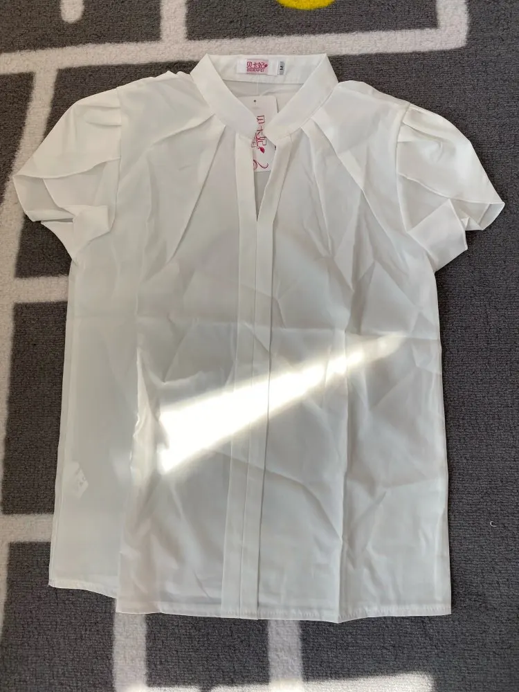 Femmes col en V en mousseline de soie Blouse à manches courtes couleur unie chemise grandes tailles moulante élégant dames automne mode chemise