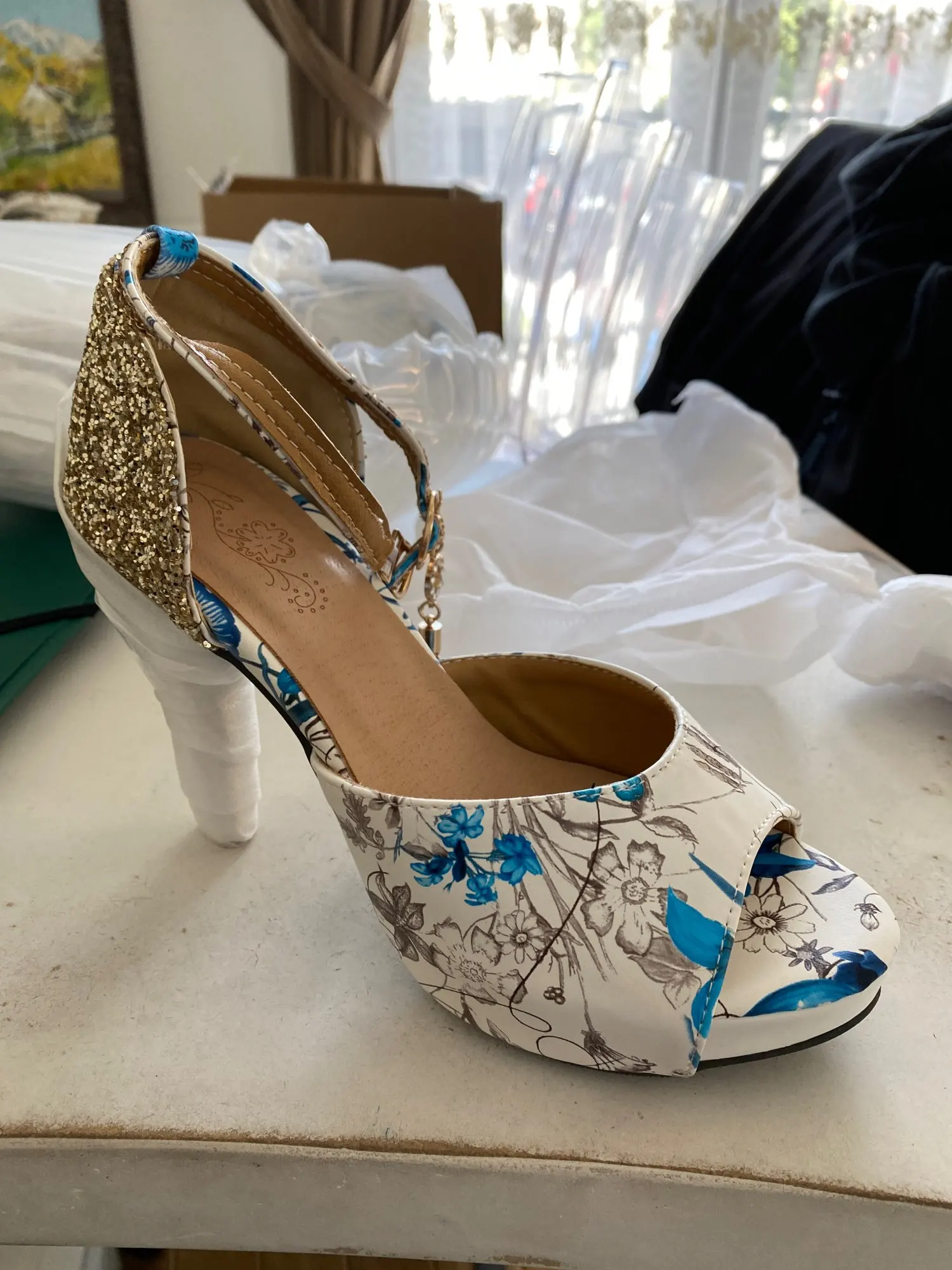 Femmes été fleur impression chaussures poisson bouche haut talon ladys plate-forme sandales robe de soirée chaussures de mariage femal zapatos de mujer