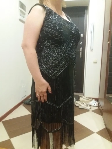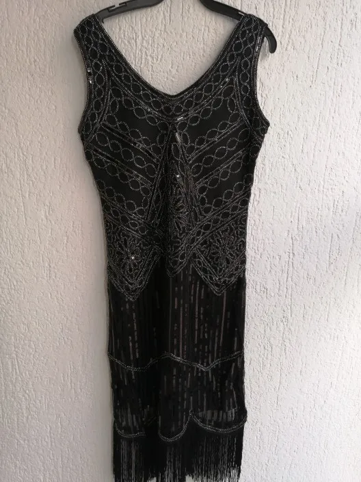 Femmes Parti Robe Robe Femme 1920 s Great Gatsby Aileron Sequin Fringe Midi Robe Robe D'été Art Déco Rétro Noir robe