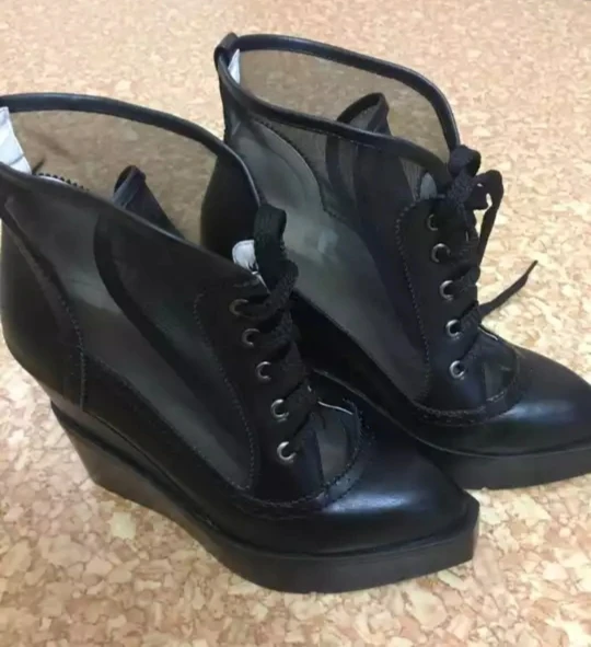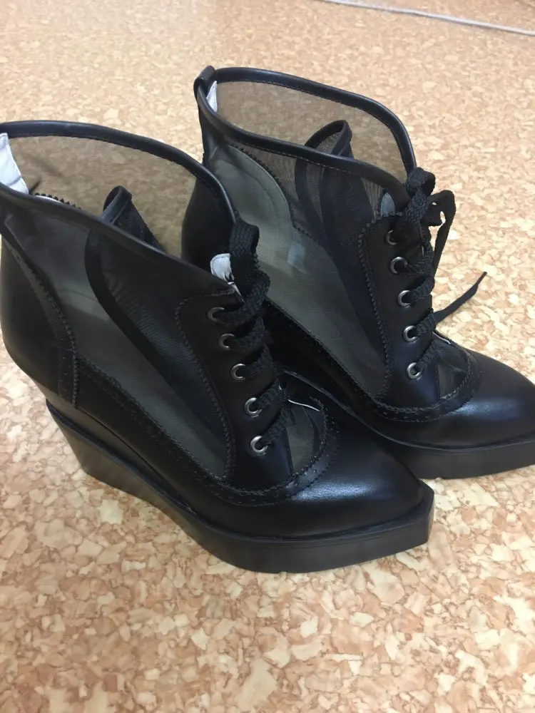 Femmes respirant maille chaussures à semelles compensées à lacets mocassins talons hauts plate-forme décontracté confort Creepers femme Botas été dentelle chaussure