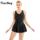Femmes sans manches ruché col en v avant Ballet danse robe avec justaucorps intégré patinage artistique robe adulte lyrique danse Costumes