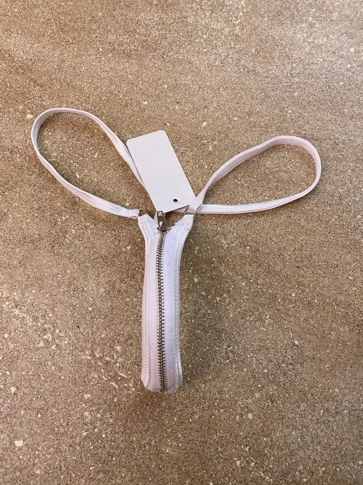 Femmes Sexy fermeture éclair tongs Cheeky Bikini G cordes bas de bain ouvert entrejambe plage bain de soleil culotte Tangas T dos Lingerie Undewear