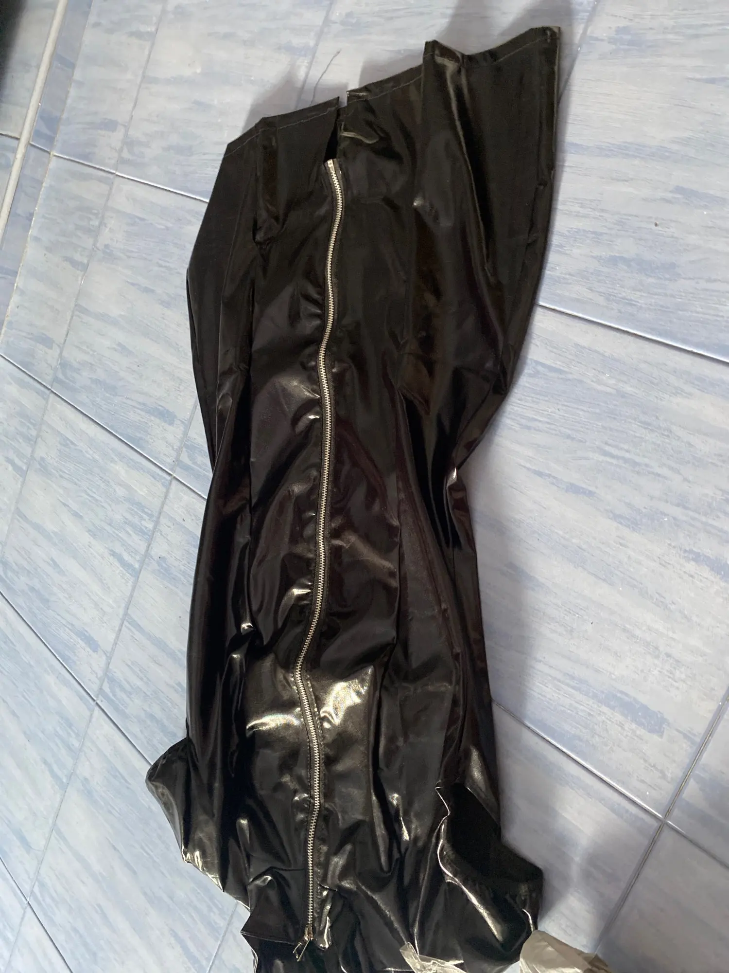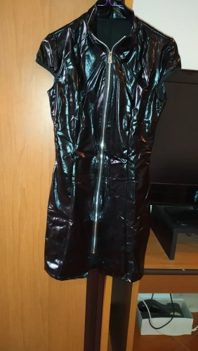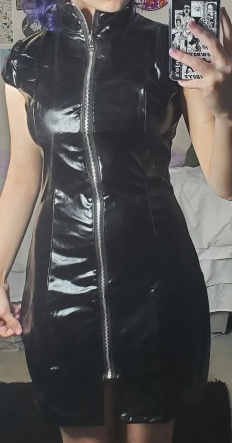 Femmes Sexy moulante Mini robe à manches courtes Clubwear robe à glissière chemise de nuit Sexy fermeture éclair Corset en cuir verni robes noir