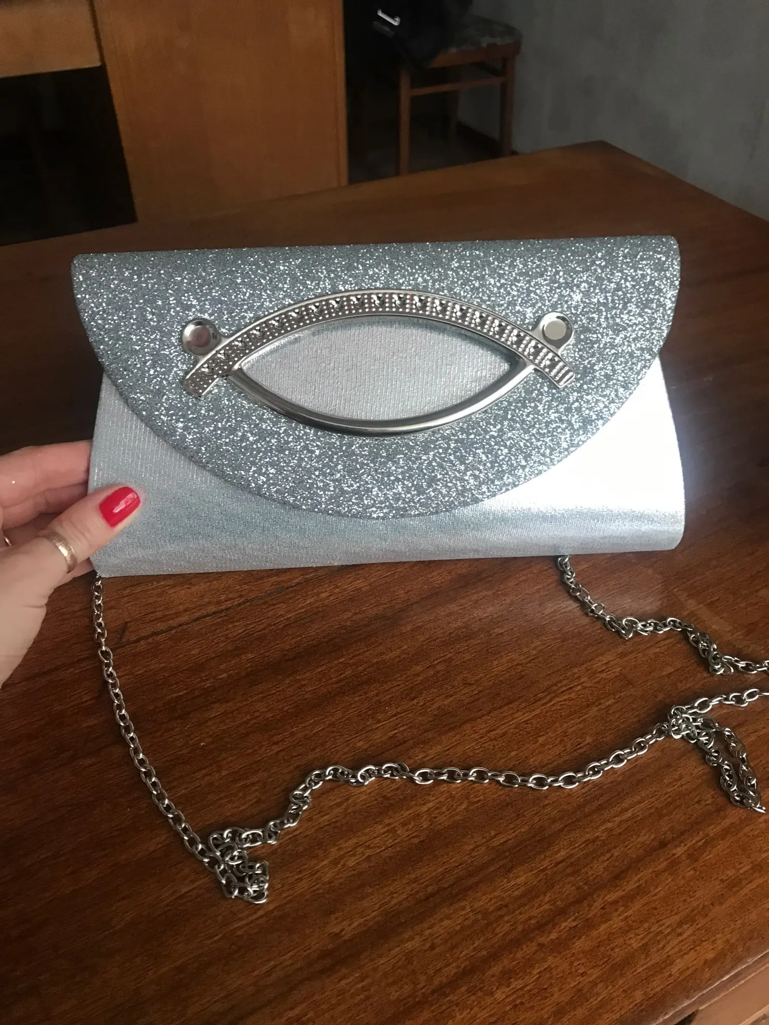 bonjour ! je suis contente de la pochette a part la chaînette un peu trop long. Cordialement Mme le dallour