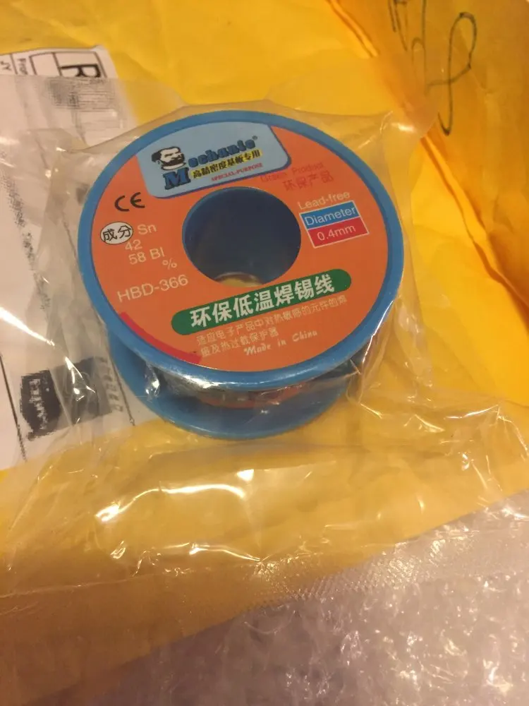 Fil à souder vert sans plomb, 40g sn 42% Bi58 %, point de fusion 210 degrés, basse température