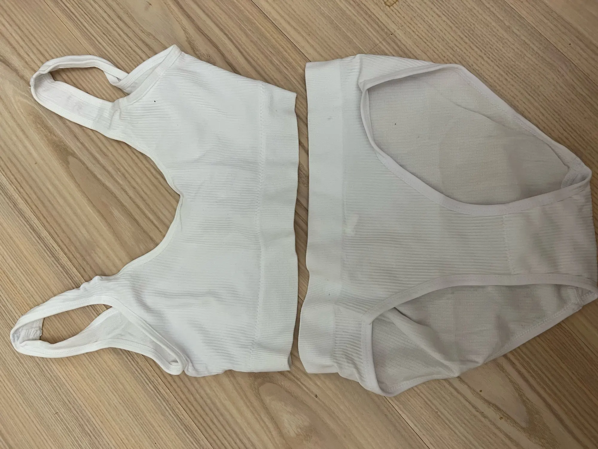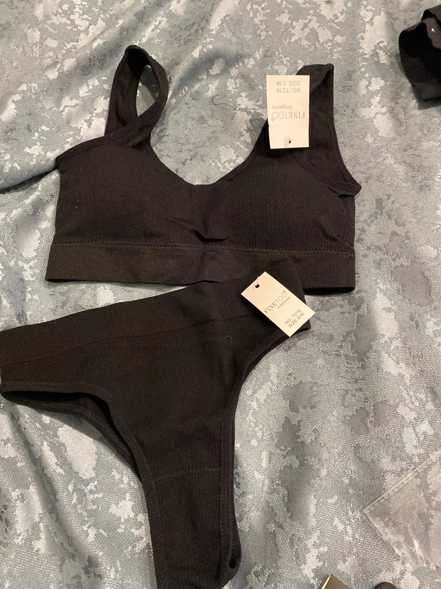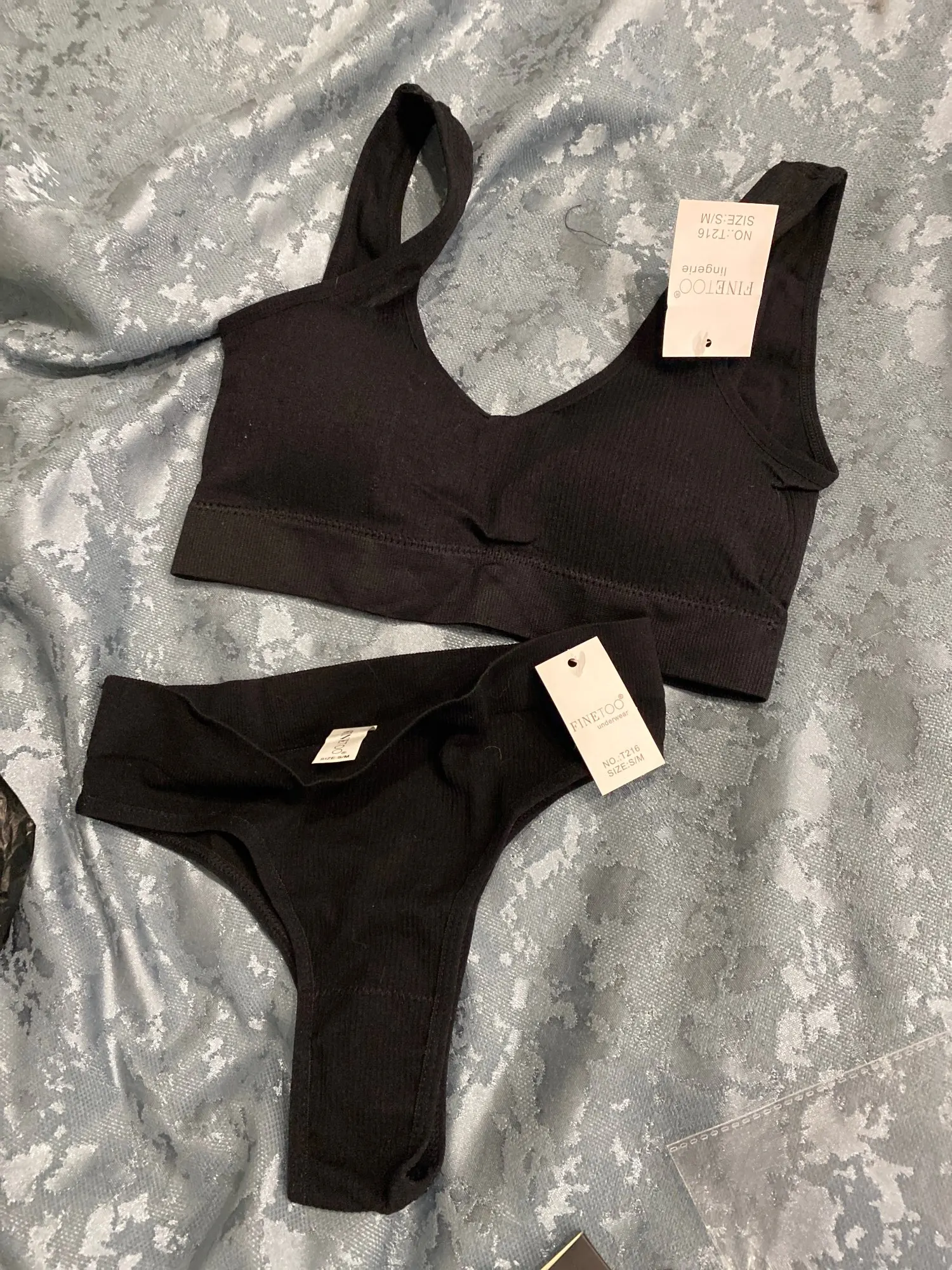 Je porte du 42 taille FR. La brassière me va bien et supporte bien la poitrine j'ai pris taille L/XL pour 95D. Mais la culotte est trop petite, elle me serre.