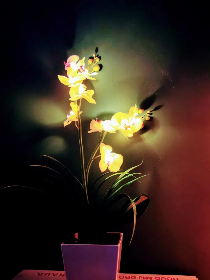 Fleur d'orchidée Phalaenopsis éclairé par batterie, bonsaï, fleur d'orchidée, pour décoration de maison de vacances, pour cadeau d'anniversaire, 9 LED piles