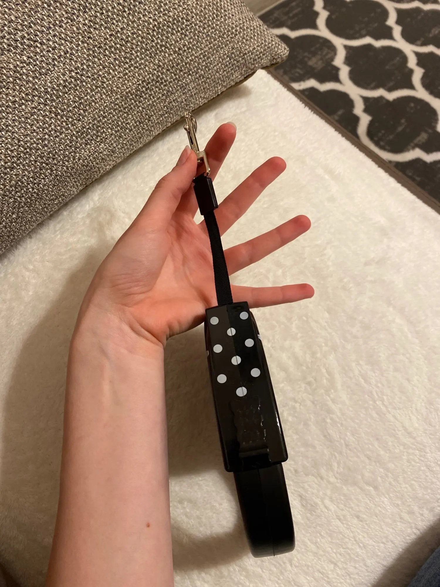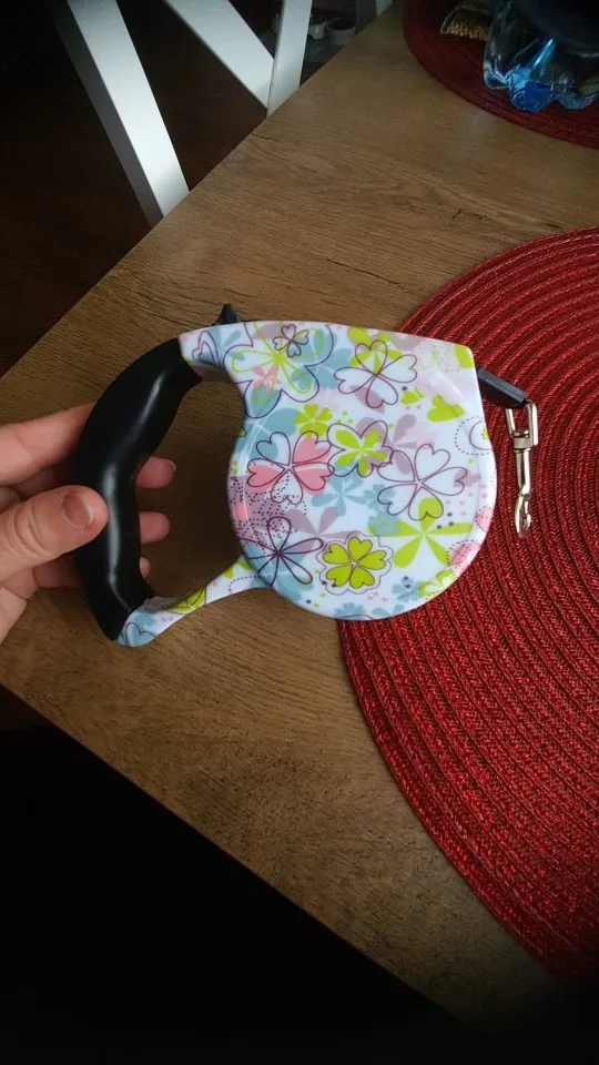 Article joli et conforme à la description. La laisse fonctionne bien et s’étend bien. Le bouton est facile et la laisse est fluide. Facile à prendre en main poignée de facilité.