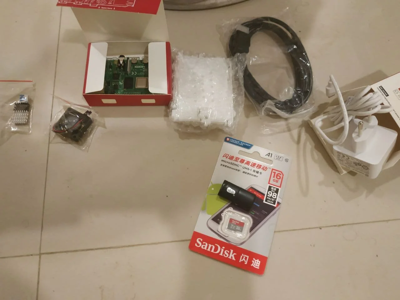 Framboise d'origine Pi 4 modèle B 2G Kit Pi 4 carte Micro HDMI câble alimentation avec boîtier de commutation avec ventilateurs dissipateurs de chaleur