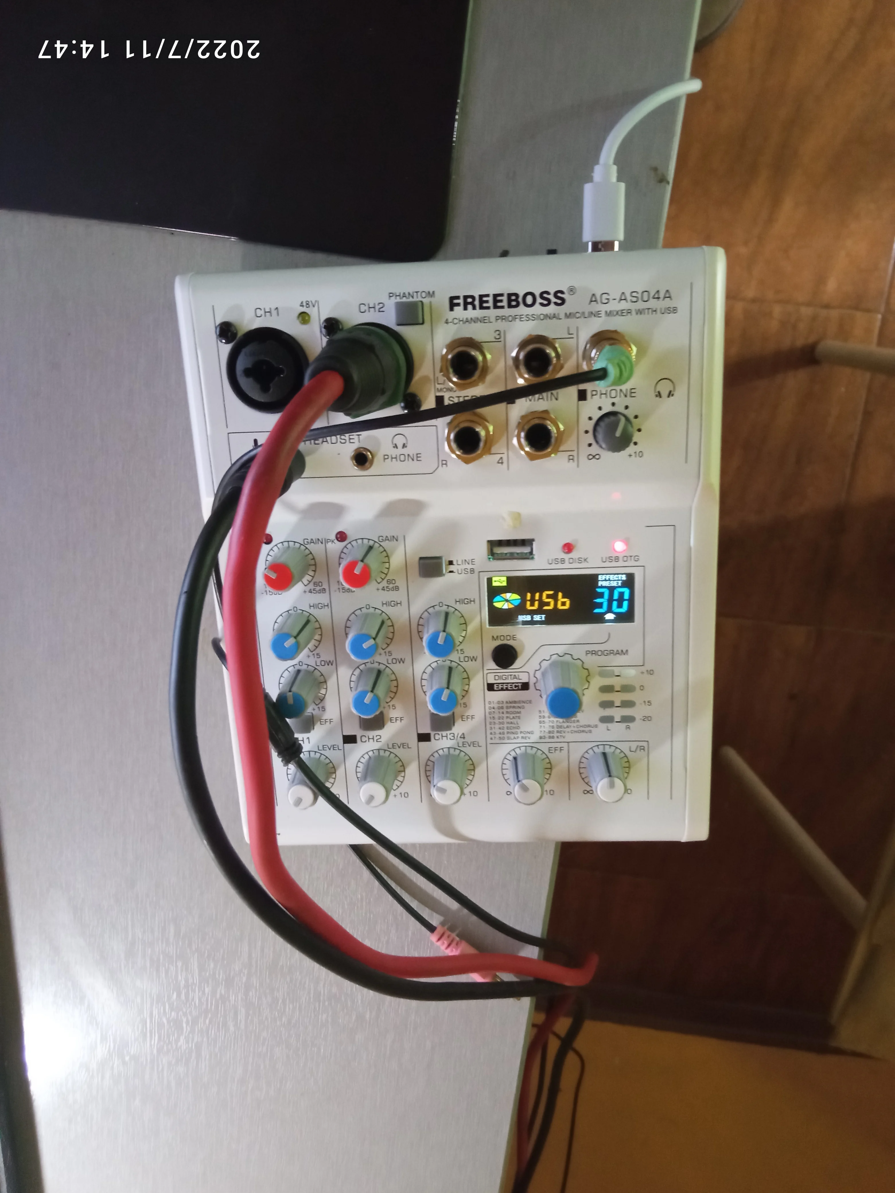 FREEBOSS – mélangeur Audio personnel, 4 canaux, Bluetooth, DC 5V, USB, ordinateur portable, lecture et enregistrement de 88 effets DSP, réverbération Echo, AG-AS04A