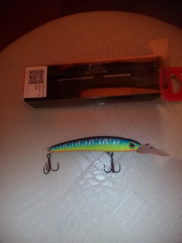 FTK – leurre méné rigide coulant au Laser avec triple hameçon, appât artificiel idéal pour la pêche au bar ou au brochet, avec Wobblers, 80mm, 7g, 1 unité