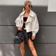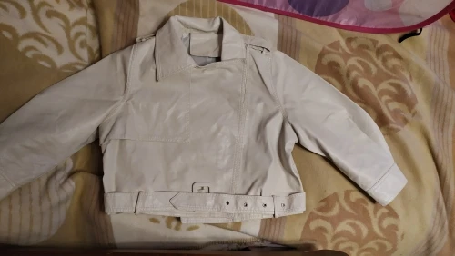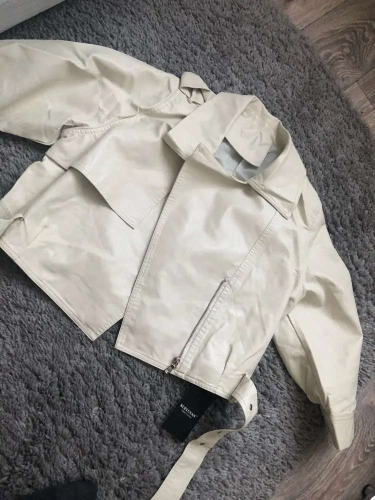 FTLZZ blouson en similicuir Pu femme, Slim avec ceinture, manches trois-quarts, court