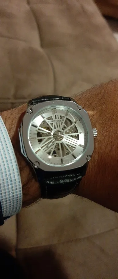 Gagnant Top marque hommes montre automatique Rose doré creux squelette en cuir montres hommes d'affaires horloge mécanique livraison directe