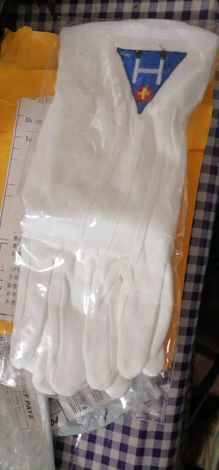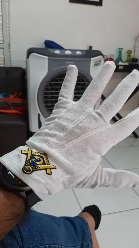 Gant maçonnique en coton regalia, bleu, avec Logo brodé carré et boussole