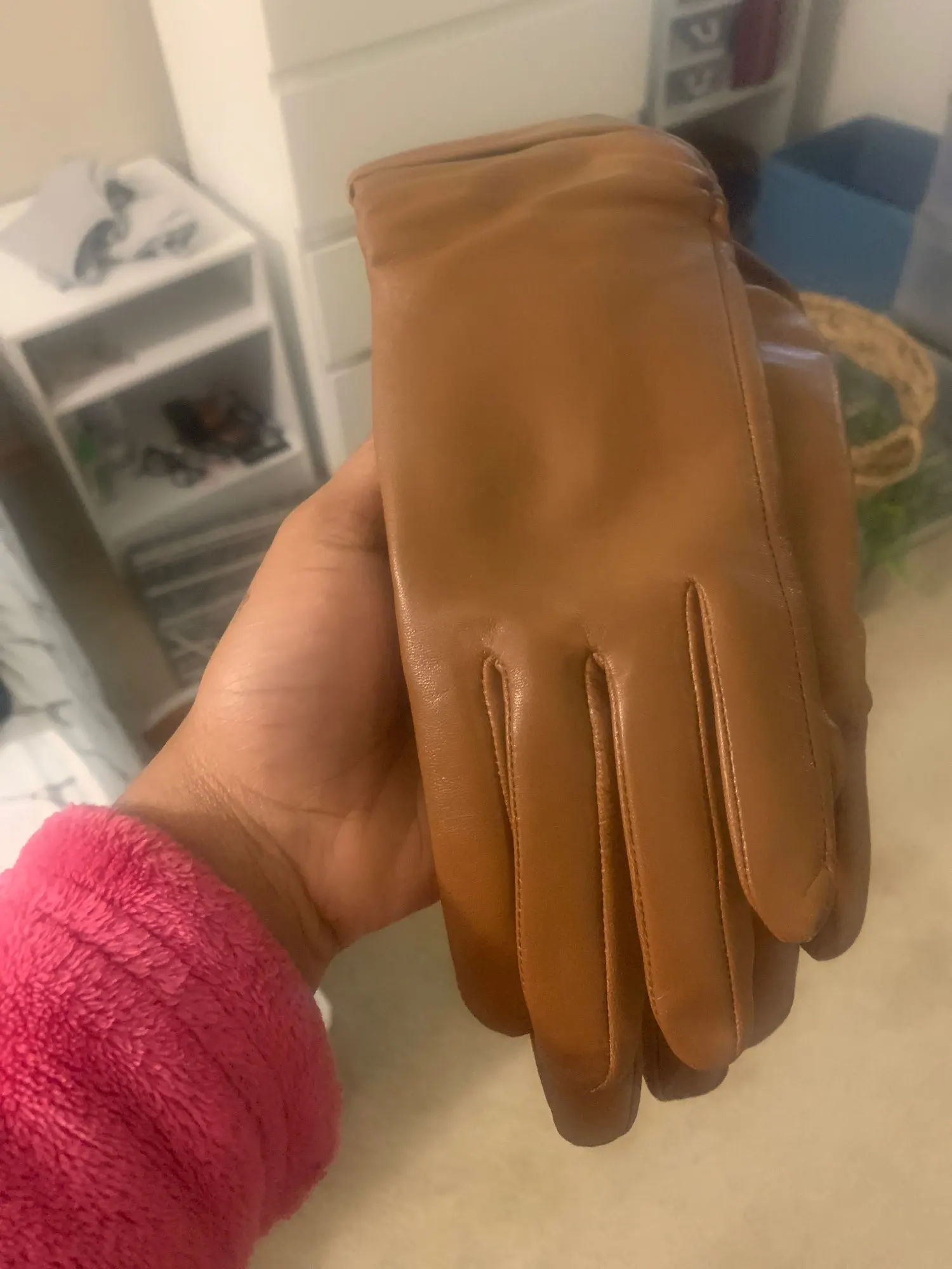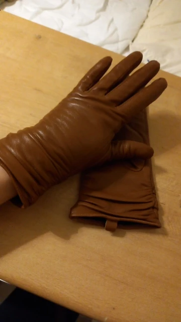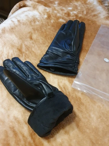 je suis satisfaite de mon achat de mon achat. les gants sont comme sur la photo. ils sont en cuir et doublés. Ils sont beaux et chaud. rapport qualité prix, excellent ! Je recommande sans problème.