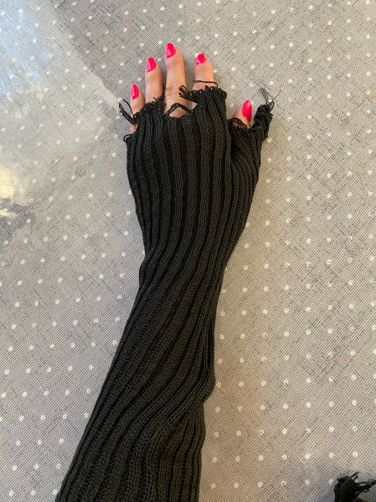 Gants en tricot Punk en lambeaux pour femmes et hommes, unisexe, manchette sans doigts, mitaines de longueur de coude cassé, Cool et extensible