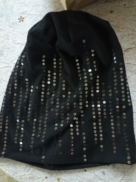 Geebro-Bonnet à paillettes argentées femmes | Bonnet de printemps, Bonnet en coton noir, Bonnet pour femmes, Skullies Balaclava, Bonnet Sapka