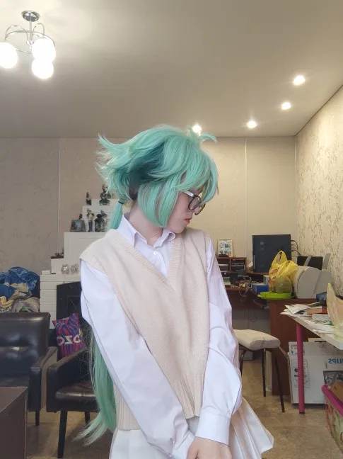 Genshin Impact saccharose Cosplay 85cm perruque longue vert pomme perruque Cosplay Anime Cosplay perruques résistantes à la chaleur perruques synthétiques Halloween
