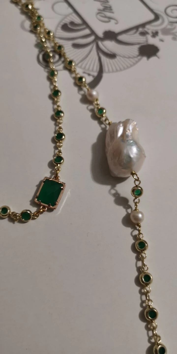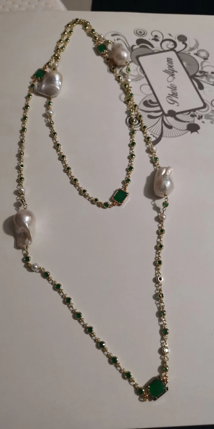 GG – ensemble collier et boucles d'oreilles en cristal vert, 43 pouces, bijoux Keshi blanc, perle