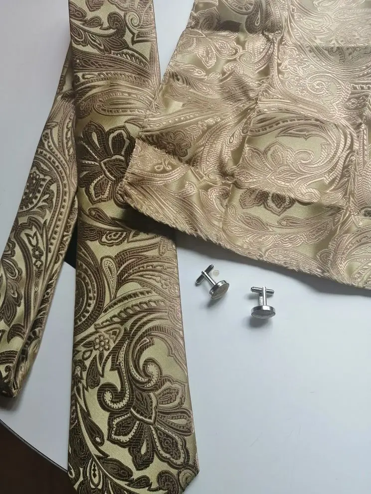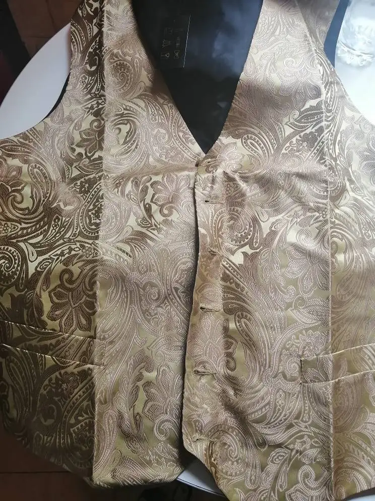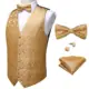 Gilet en soie Extra pour hommes 4 pièces, gilet Paisley de fête de mariage or solide Floral, gilet de poche carré cravate ensemble de costume Barry.Wang